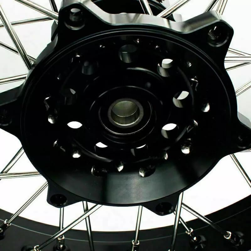 Fit: Fit for Suzuki DR650SE 1996-2022 Product Features: -Brand New Complete Set of FRONT & REAR Wheels Hubs, Bearing Spacers and Seals included Front Wheel = 17" x 3.5" x 36 holes Spokes Rear Wheel = 17" x 4.25" x 36 holes Spokes Front Wheel RIM OEM Reference :55311-44B00 Front Wheel HUB OEM Reference :54111-31D01 Rear Wheel RIM OEM Reference :65311-32E01 Rear Wheel HUB OEM Reference :64111-15D10 Rear Hub with Cush Drive(cush drive is a part of a motorcycle or scooter drive-train that is designed to reduce stress from engine torque damaging other components during gear or throttle changes. ) Net weight: 30lbs Professional quality wheel sets built of the best components available. 6061 T6 Aluminum CNC Machined Hub andozied color. 304 Stainless steel spoke with brass nipple. 7116 T7 Alloy Rims(7116 Rims Price double compare with 7075) Each wheel set have been tested, guaranteeing the best in quality and performance. Will last for years of top performance. All the install specification for Brake rotors , sprocekt are same with stock original wheels