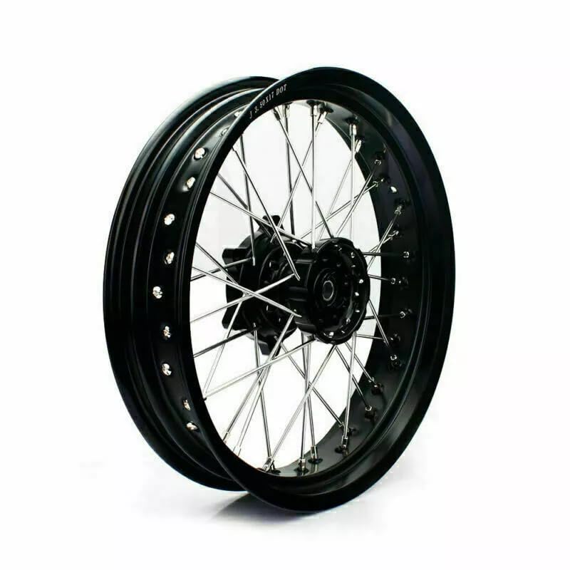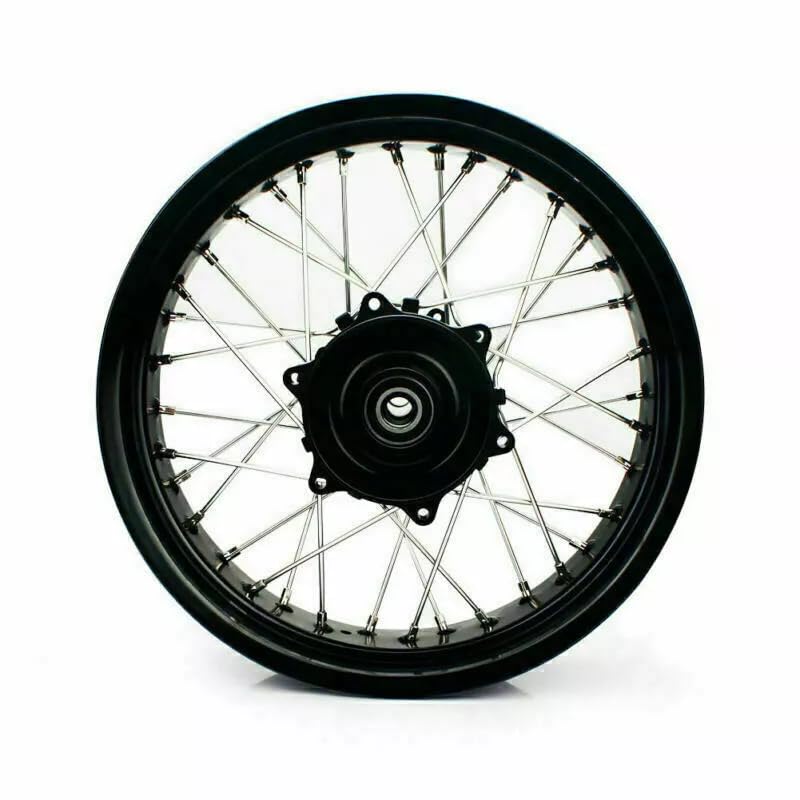 Supermoto wheels with 36 spokes ,also including bearings,seals and wheel axle spacers, Front Axle Spacers Diameter 25mm, Rear Axle Spacer Diameter 20mm.