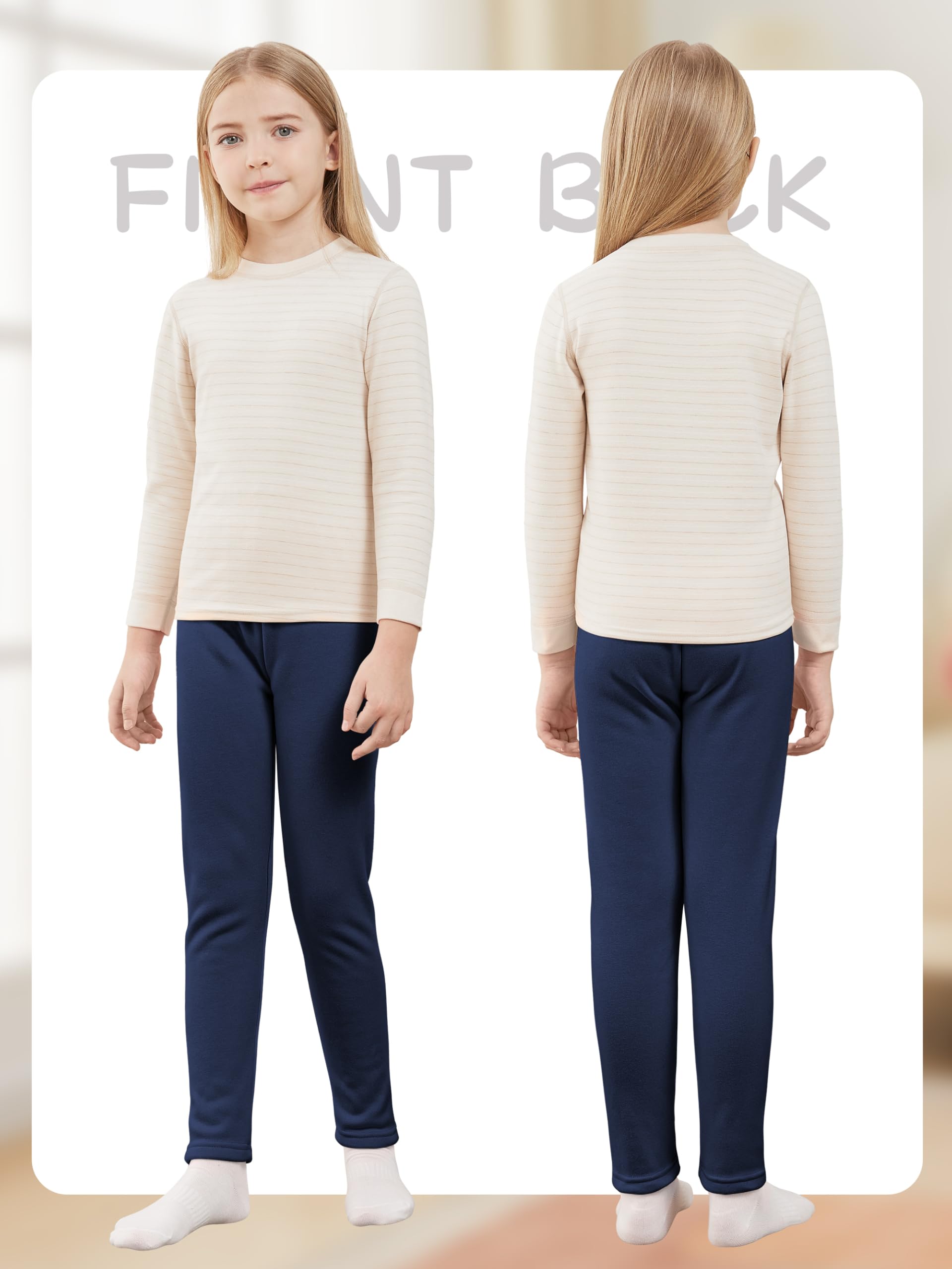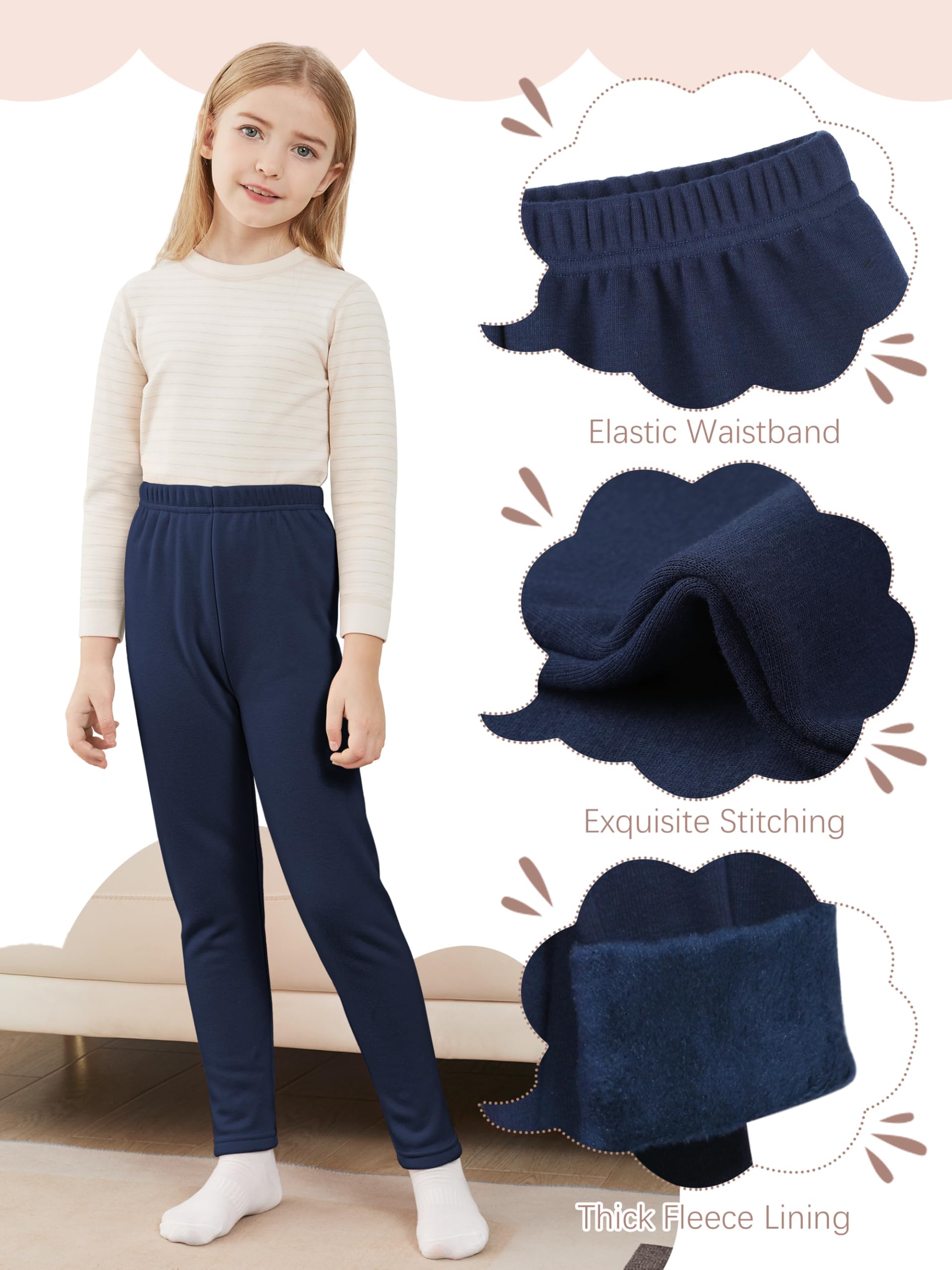 FLEECE LINED LEGGINGS: The outer layer of these warm leggings for girls is made of pure cotton and they are lined with fleece, making them elastic, soft, comfortable, and with excellent warmth.