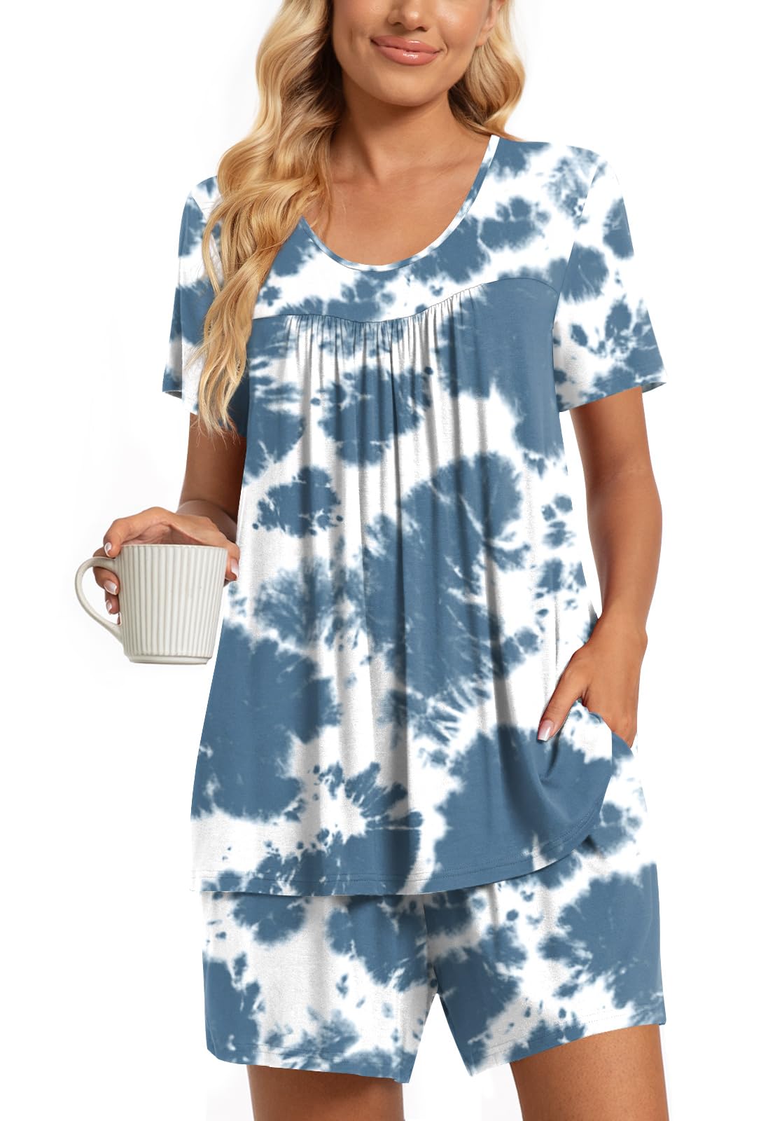Note: Our pajama shorts sets for women run true to US sizing. Sizes available: M(US 8-10), L(US 12-14), XL(US 16-18), 2XL(US 20-22), 3XL(US 24-26), 4XL(US 28-30). Due to manual measurement, a 0.8-1.2 inch discrepancy is acceptable. The women's pjs are carefully prepacked by the manufacturer. If they arrive with any creases, we suggest using light steam iron to gently remove them