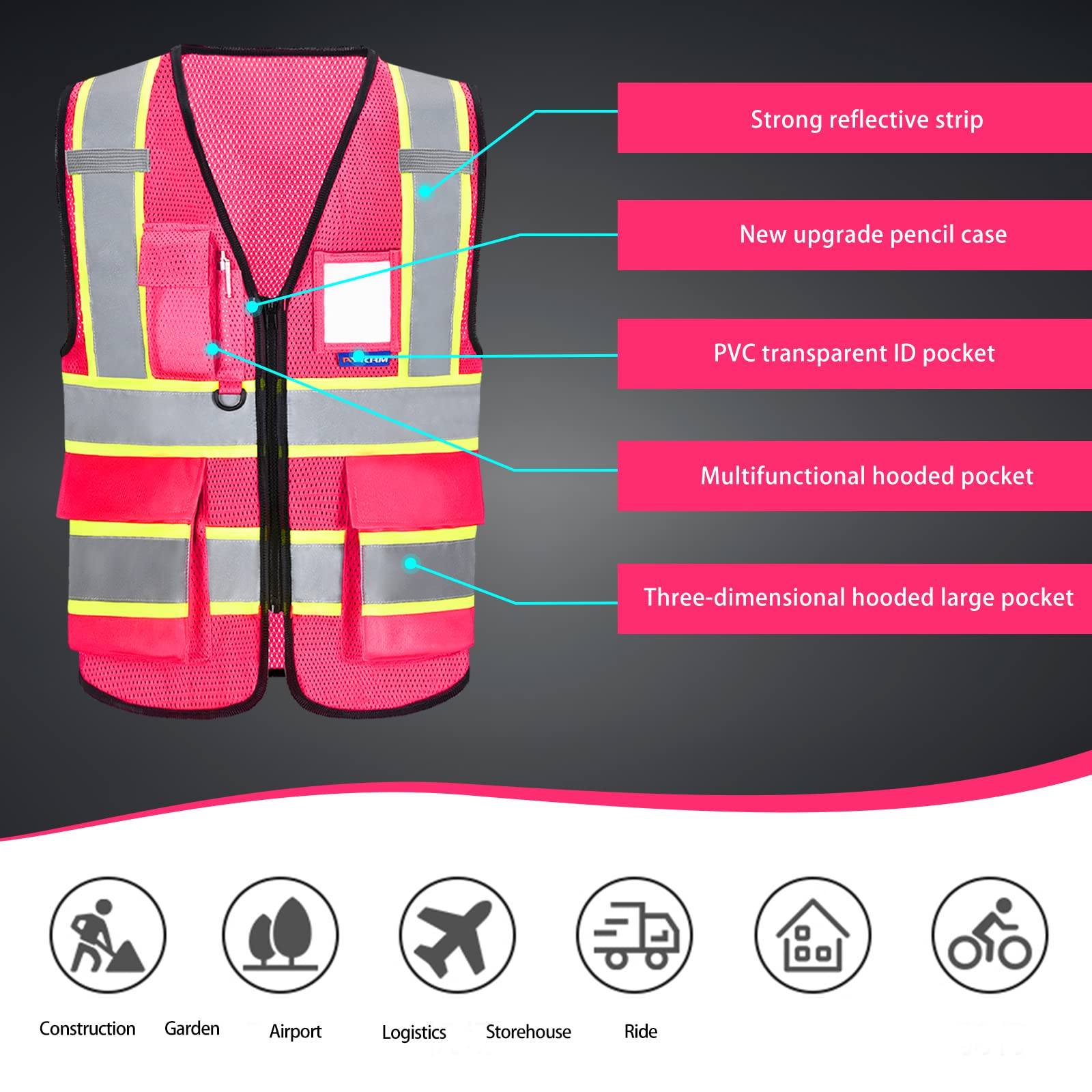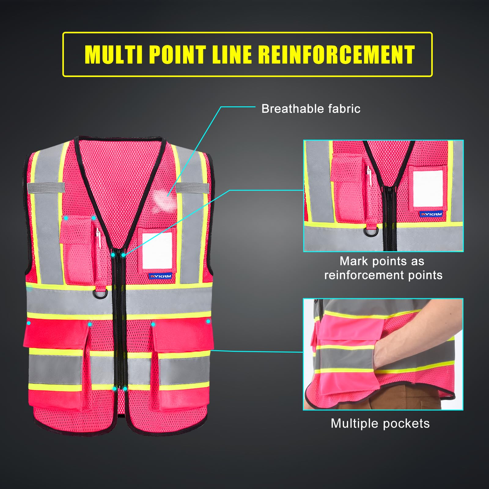 ✅【MATERIALS】MATERIALS: 100% polyester high visibility reflective material, lightweight and breathable, washable and durable.Black edging is not easy to dirty easier to match.High visibility safety vests There are yellow, orange, pink, blue, purple, green, white, black, red and navy . You can choose the color you like. Different colors can also distinguish different departments or positions. Customers who prefer a looser fit should order 1-2 sizes larger.