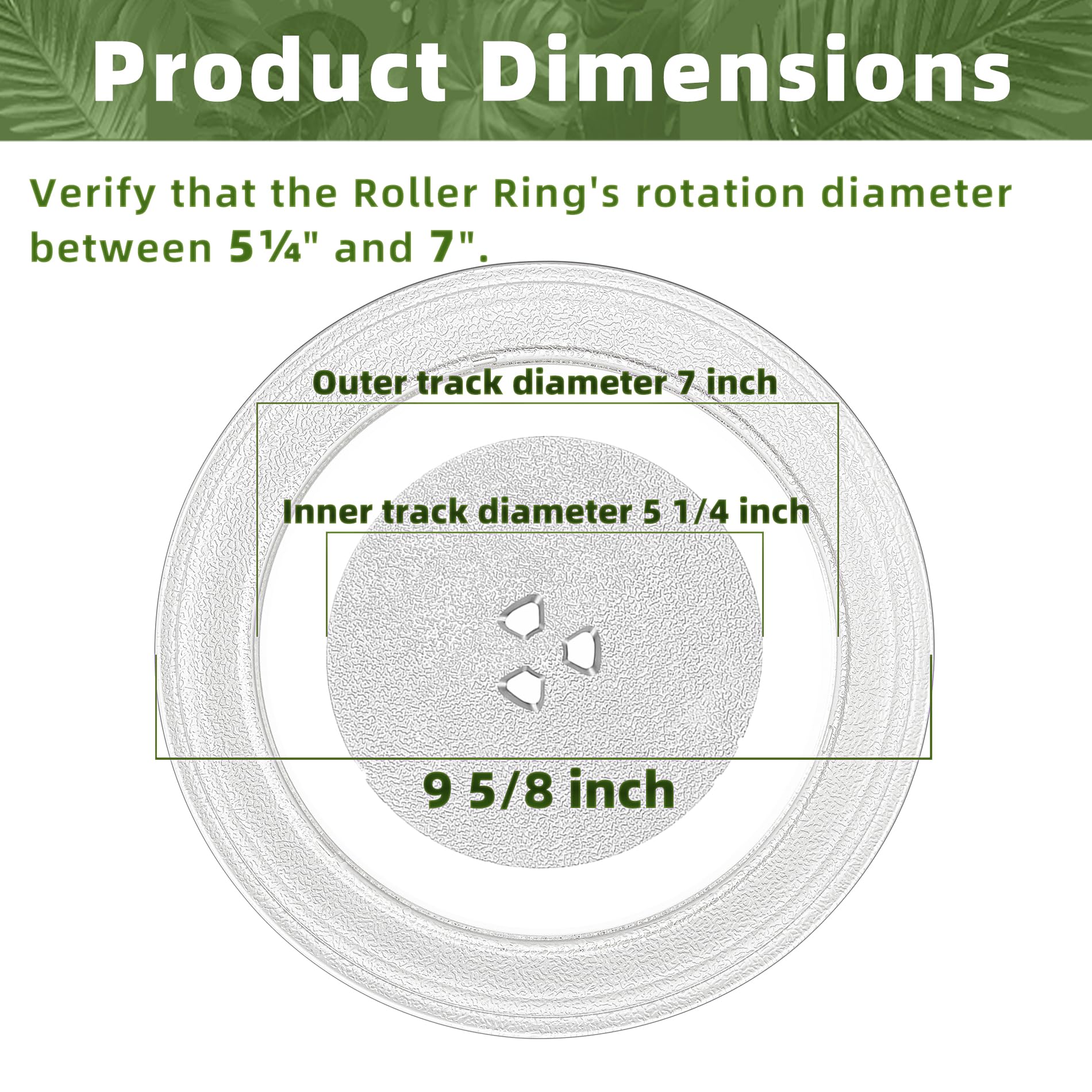 【LOOK OUT!】This 9.6 inch microwave plate ONLY Compatible with Galanz small microwave glass turntable. The 9.6 inch microwave glass plate comes in 3 types: Small Coupler Hole (with 7 5/8" or 7" outer track) and Flat Bottom., and they can't replace one another. Gemroom offers microwave plate replacement from 9.6" to 16.5", please click on "Visit the Gemroom Store" for more options