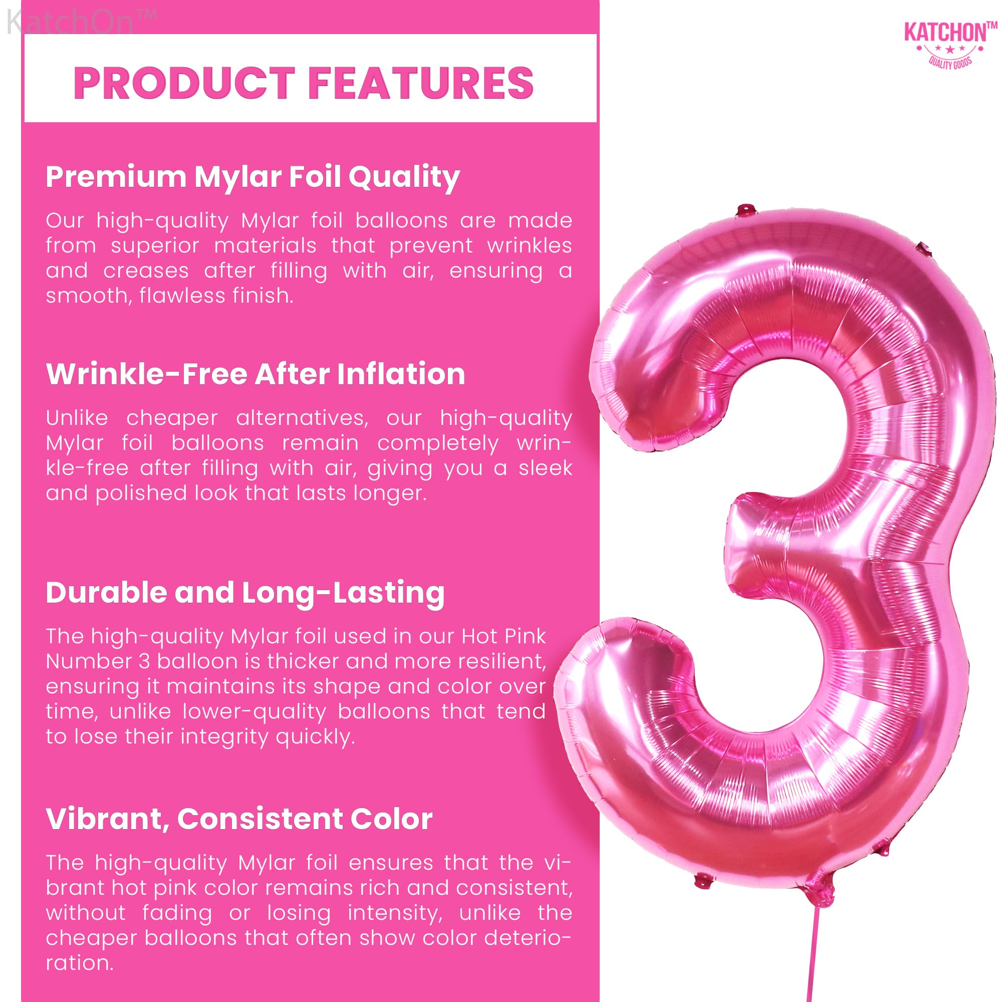 BUILT TO LAST | REUSABLE AND STURDY : This beautiful Hot Pink 3 ballon for 3rd birthday party balloons is made from durable Grade ‘A’ quality materials, sturdy enough to stand the long-hour display. Just deflate it properly and keep in a safe storage. Create pink theme 3rd birthday or even beach-themed party decorations 3rd birthday girl. These giant pink number 3 balloon or number 3 large balloon is perfect for pink theme birthday party decorations, 3 birthday balloons for 3 rex birthday decorations girl, hot pink birthday decorations, happy birthday decorations Pink.