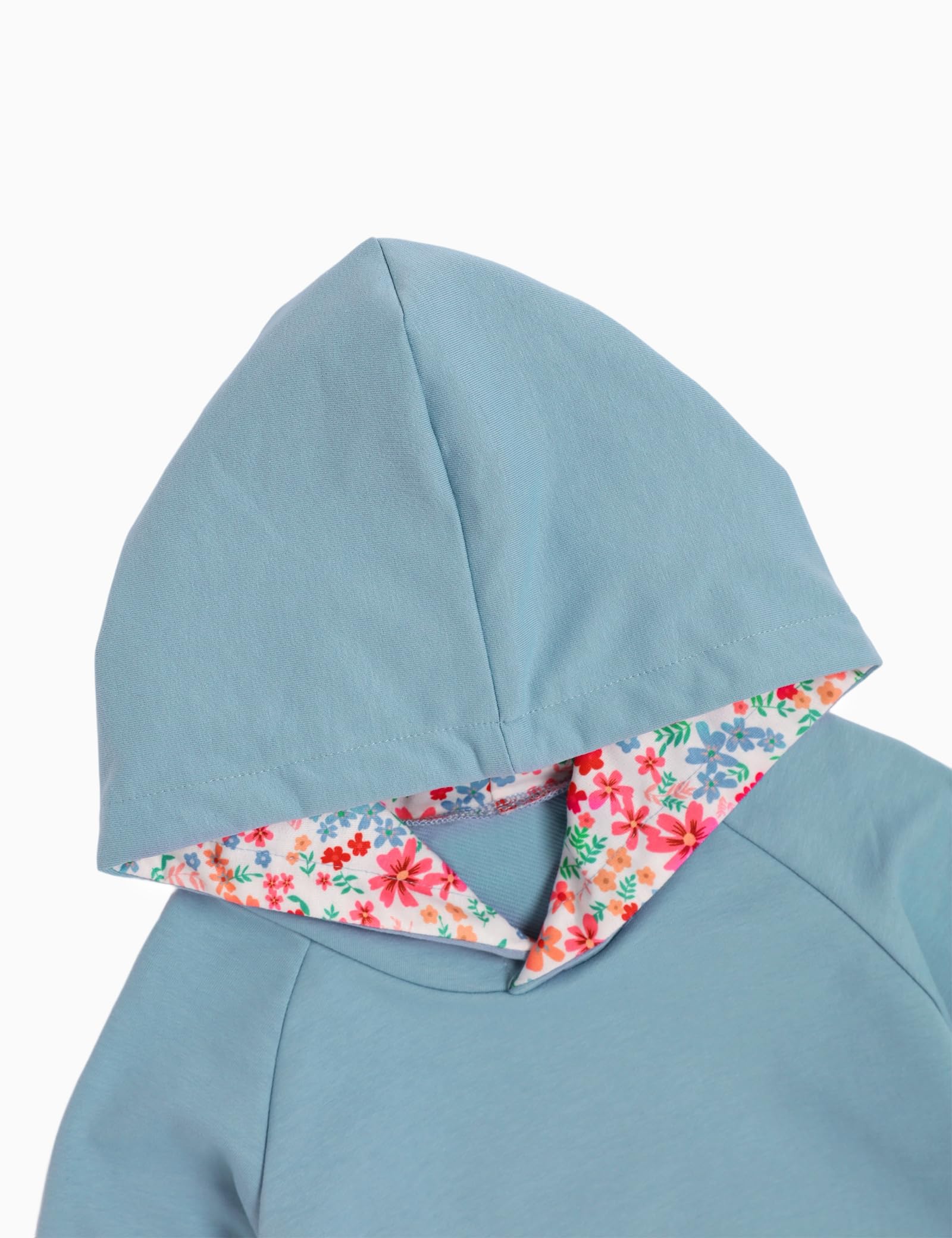 Ingenious Design:A hooded sweatshirt in solid colors, paired with adorable kangaroo pockets, and printed trousers with an elastic waistband for easy wear; Complete with a matching printed headband