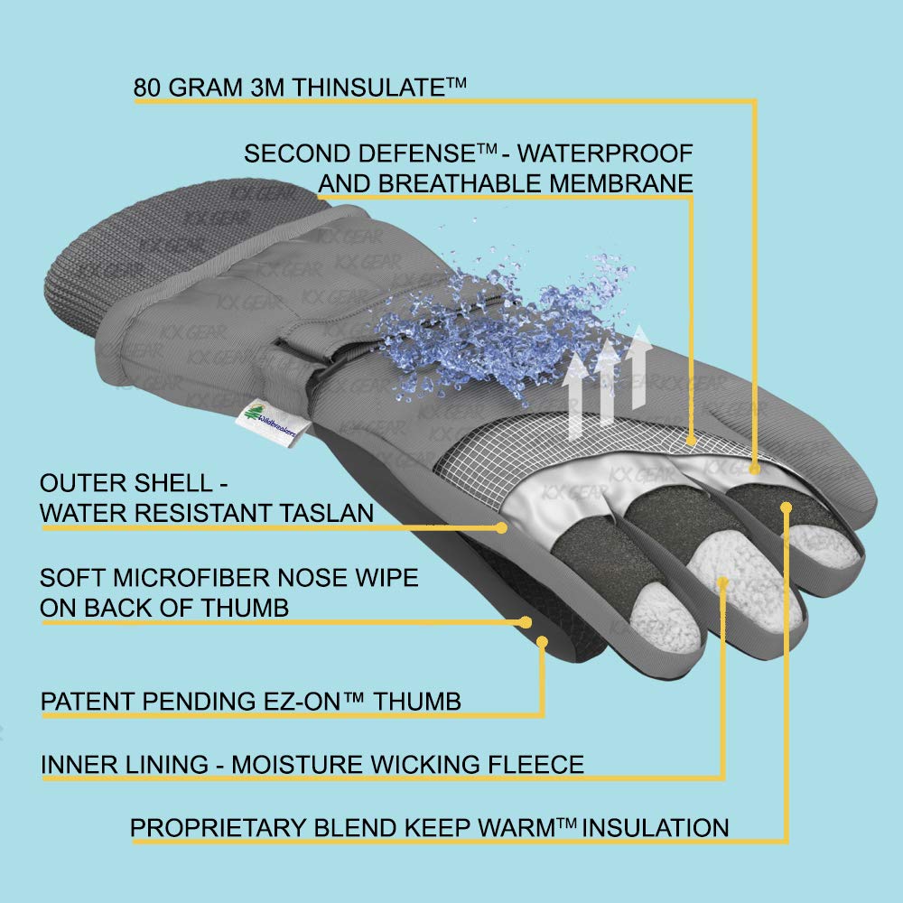 Description What does every little boy and girl wait for as soon as the weather turns cold?? SNOW! Whether for snowmen, sledding, skiing, or snowboarding. The face of every kid lights up when they see those first flakes hit the ground (or maybe they're just dreaming of a no-school snow day!) We all remember the excitement of seeing that crisp white carpet and the crunching of fresh snow under your feet! Only one thing stands between you and the perfect day. That is warm hands.