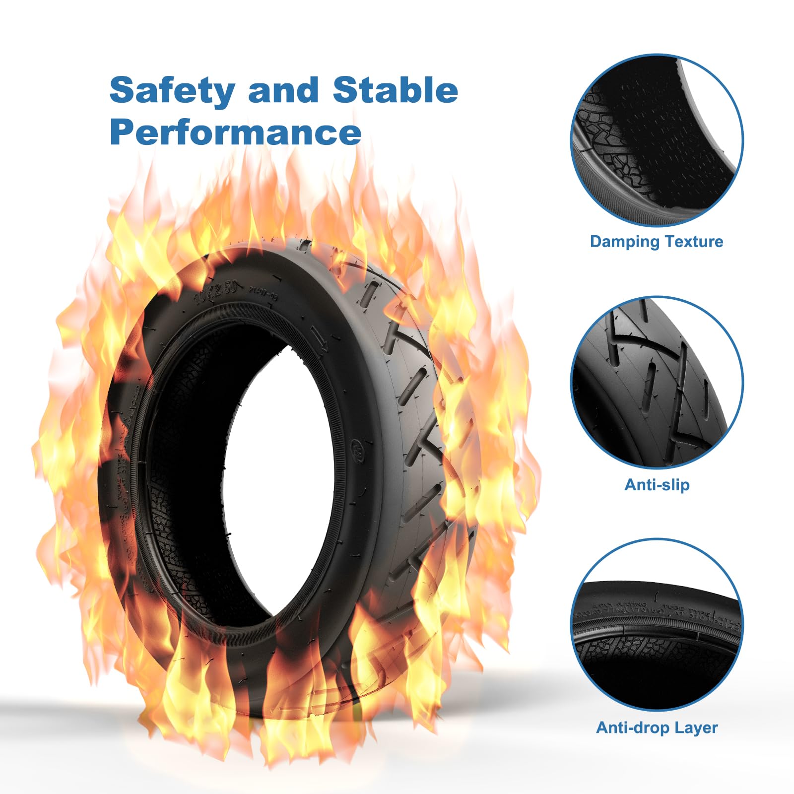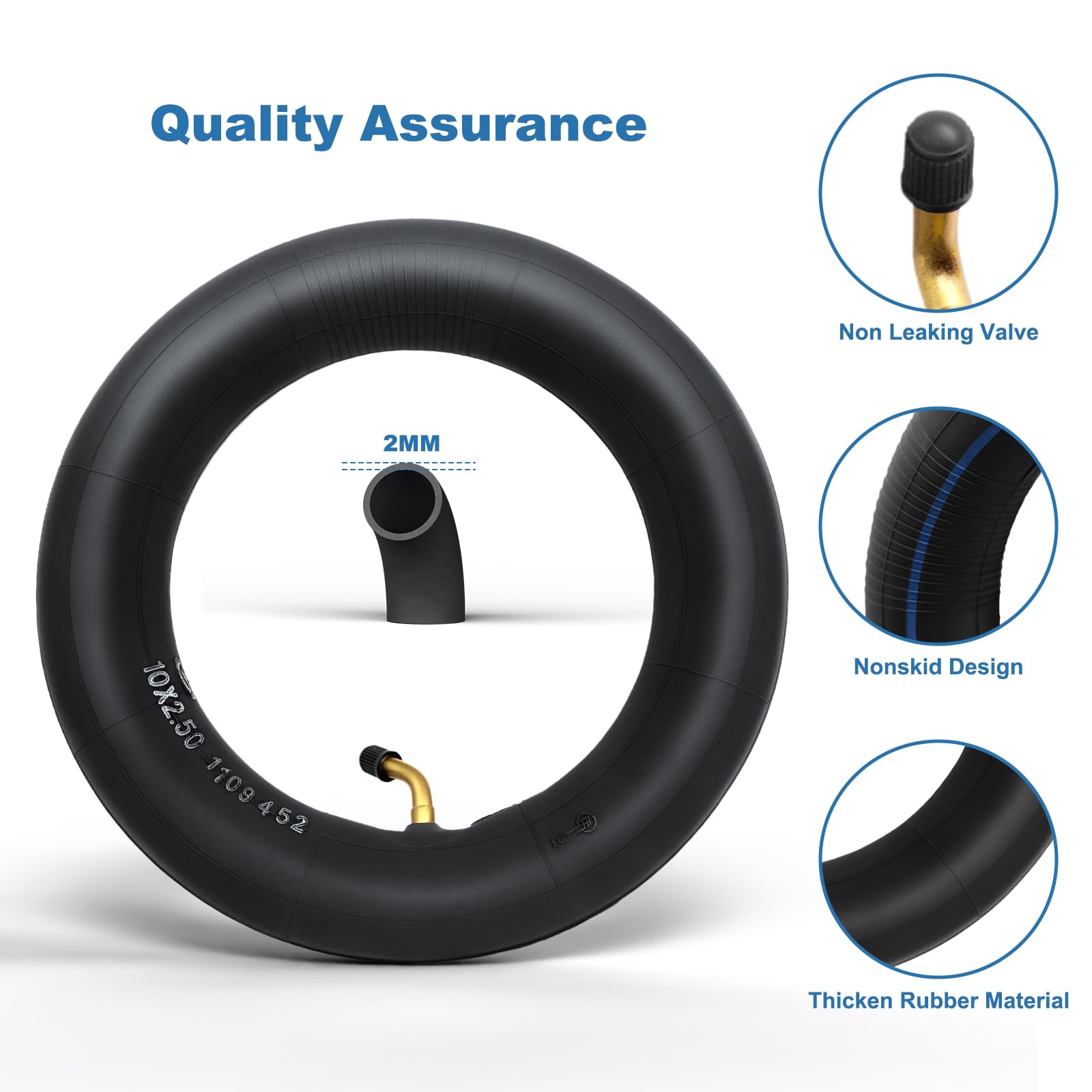 🛴【Easy to Install】: Scooter tube 10x2.5'' inner and outer tire set is so easy to replace, just ensure the valve in a right direction, it will last for thousand of miles without inflation at least. It may drive smoothly on various kinds of road surfaces, highways, rough way, stony road, sandy road, uphill road