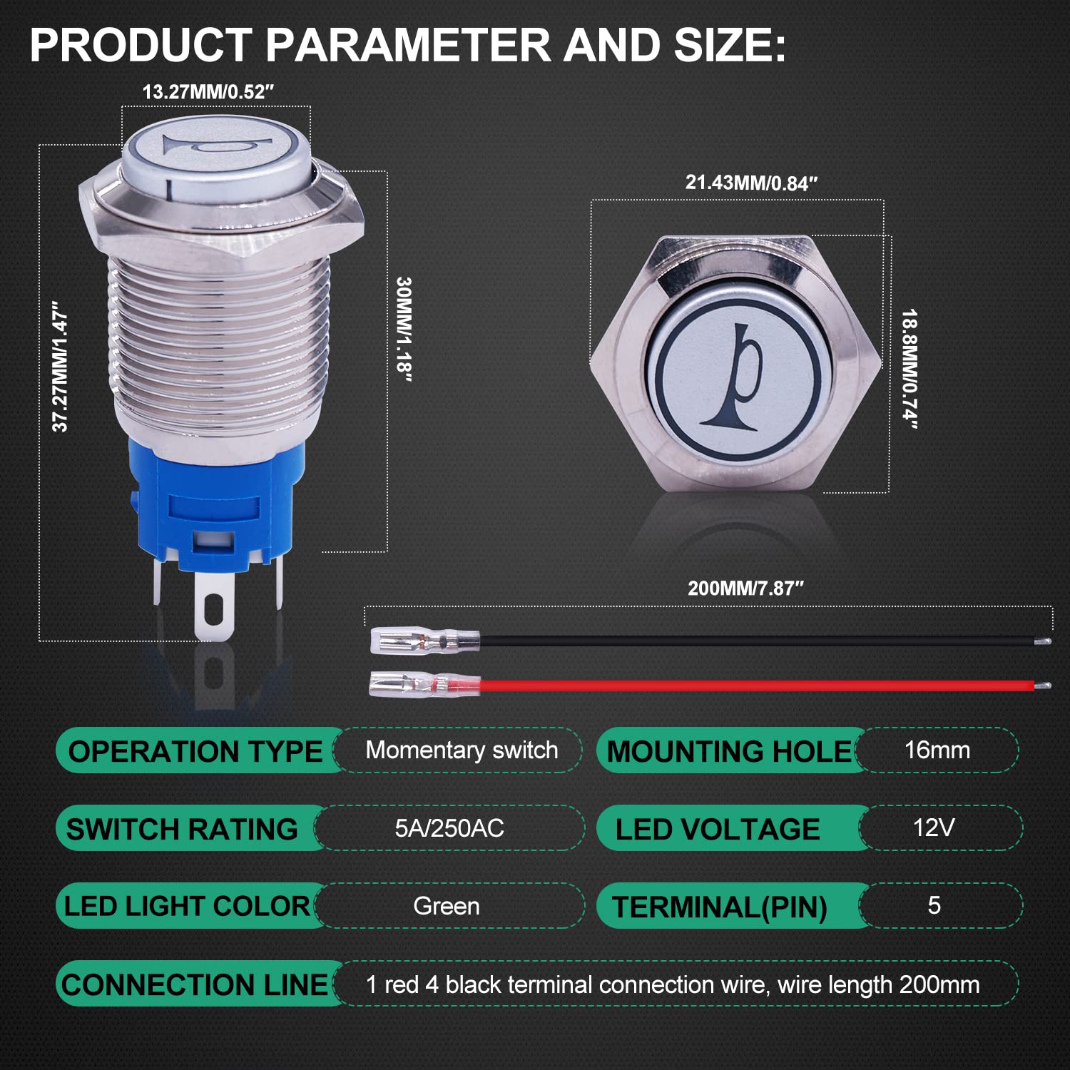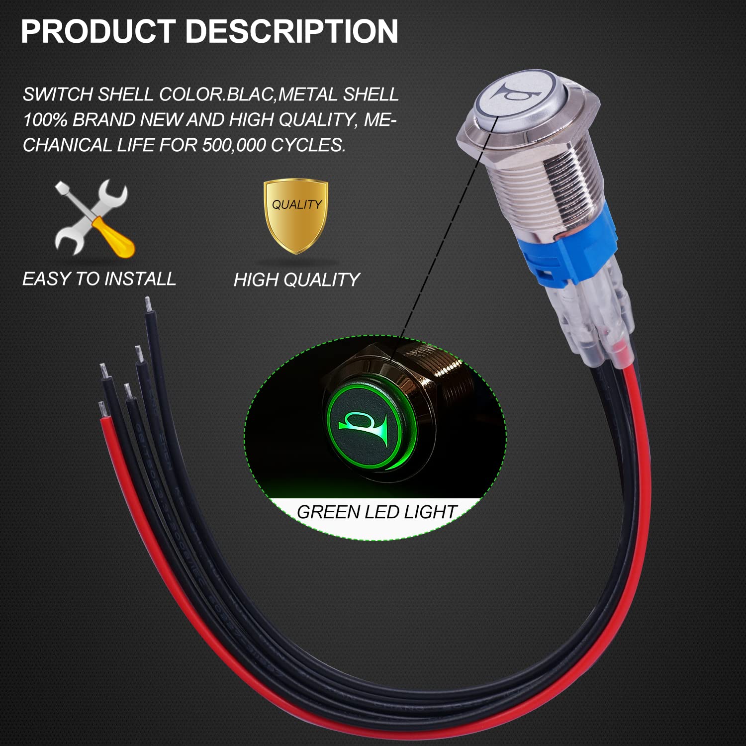 Momentary switch operation type: Push & Hold,ON; Release,OFF;Pre-wired design:easy to install,save your time to connect wire to the switches.