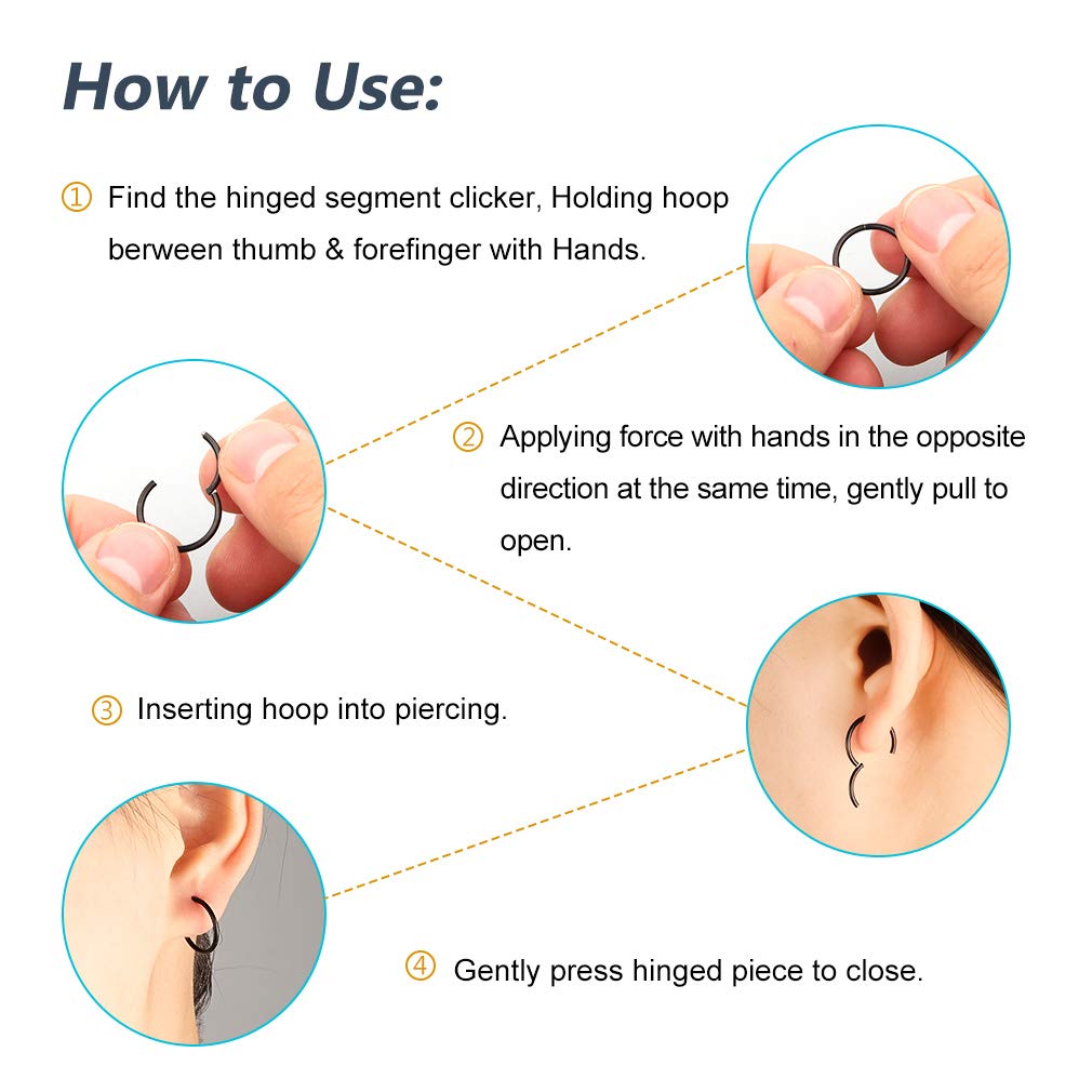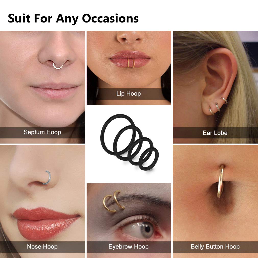 【Various Size with One Color】16G black 6mm 8mm 10mm 12mm 4 Pcs cartilage earring.One order come with 4 sizes one Color.Various size meet your different need once time.And in this four sizes, you will find the size that suits you best.
