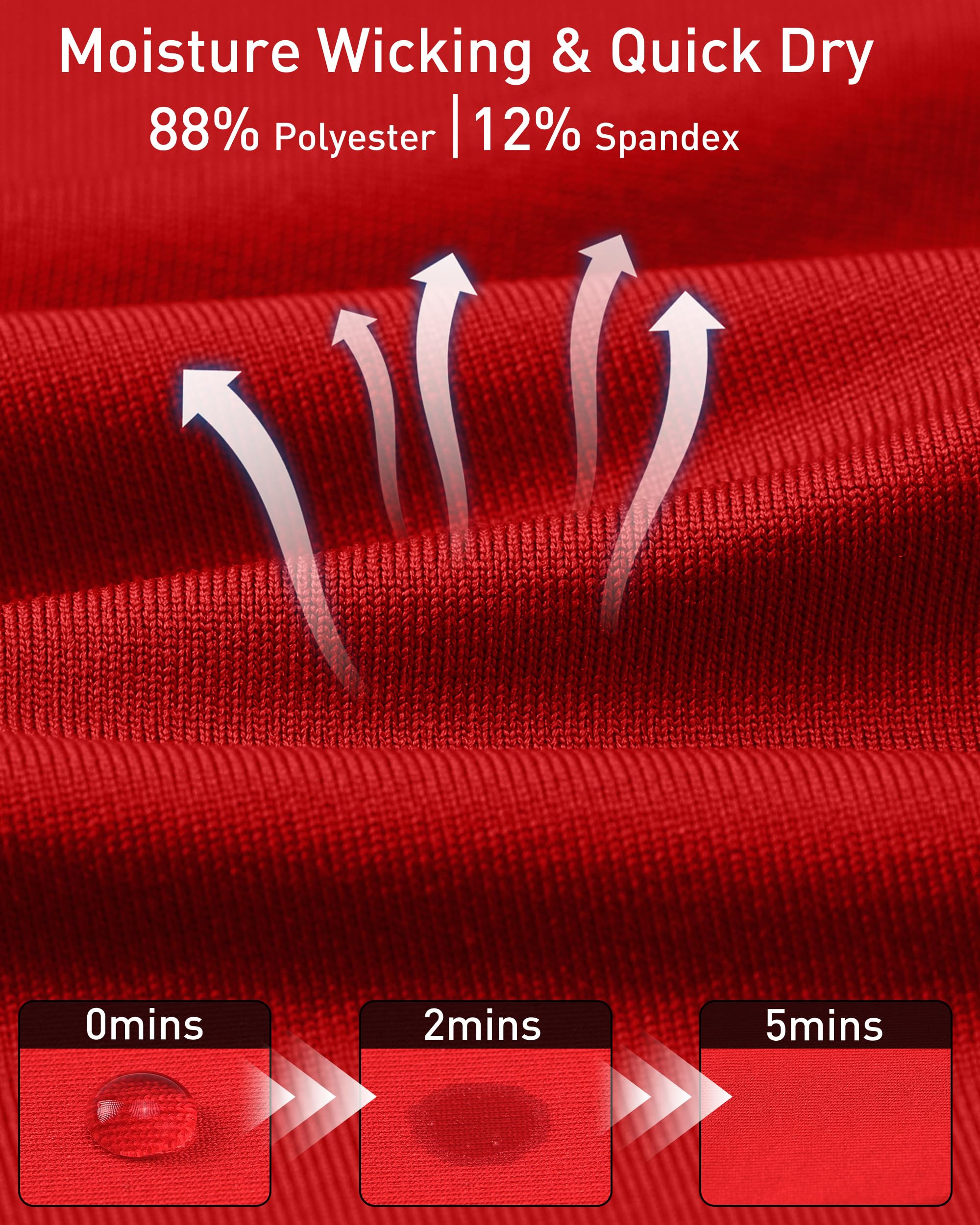 Performance Compression Fit: Made from a high-elastic blend of 88% Polyester and 12% Spandex, this compression shirt wraps your muscles for firm support, reducing vibration and fatigue during exercise, helping you peak high performance and recover faster