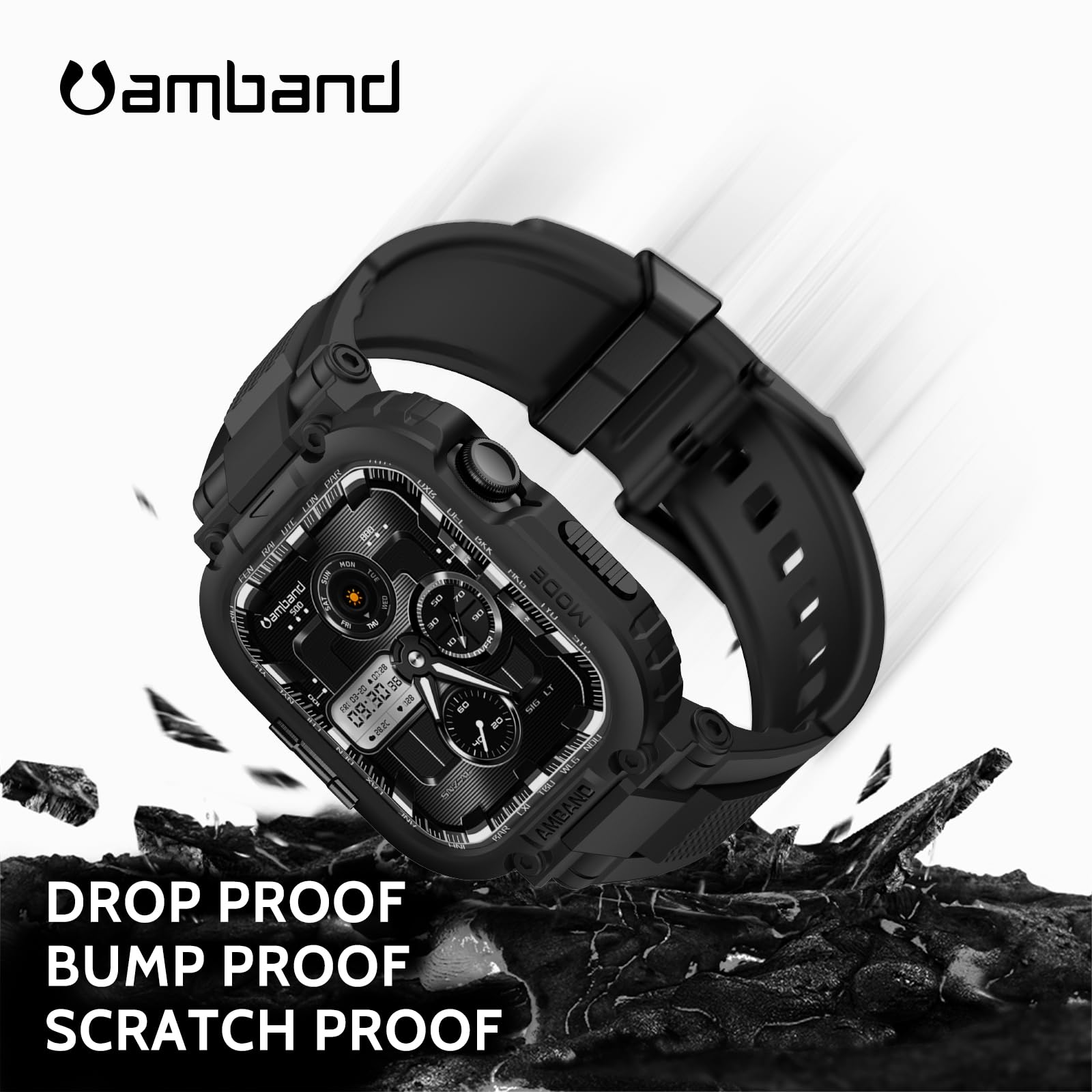 Description amBand M1 Sport Case with Band for Apple Watch Ultra 3/2/1 & SE 3/2/1 & Series 11 10 9 8 7 6 5 4 3 49mm 46mm 45mm 44mm 42mm 41mm 40mm 38mm, Shockproof & Scratch Resistant Rugged Bumper for Men