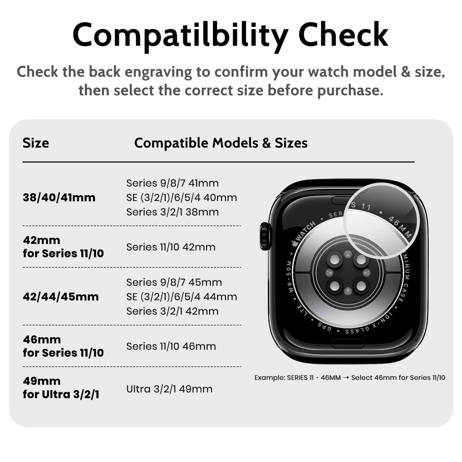 Compatibility & Fit: Compatible with Apple Watch series 11/10 (46mm). Adjustable strap fits most wrists 145-220mm (5.7" - 8.7").