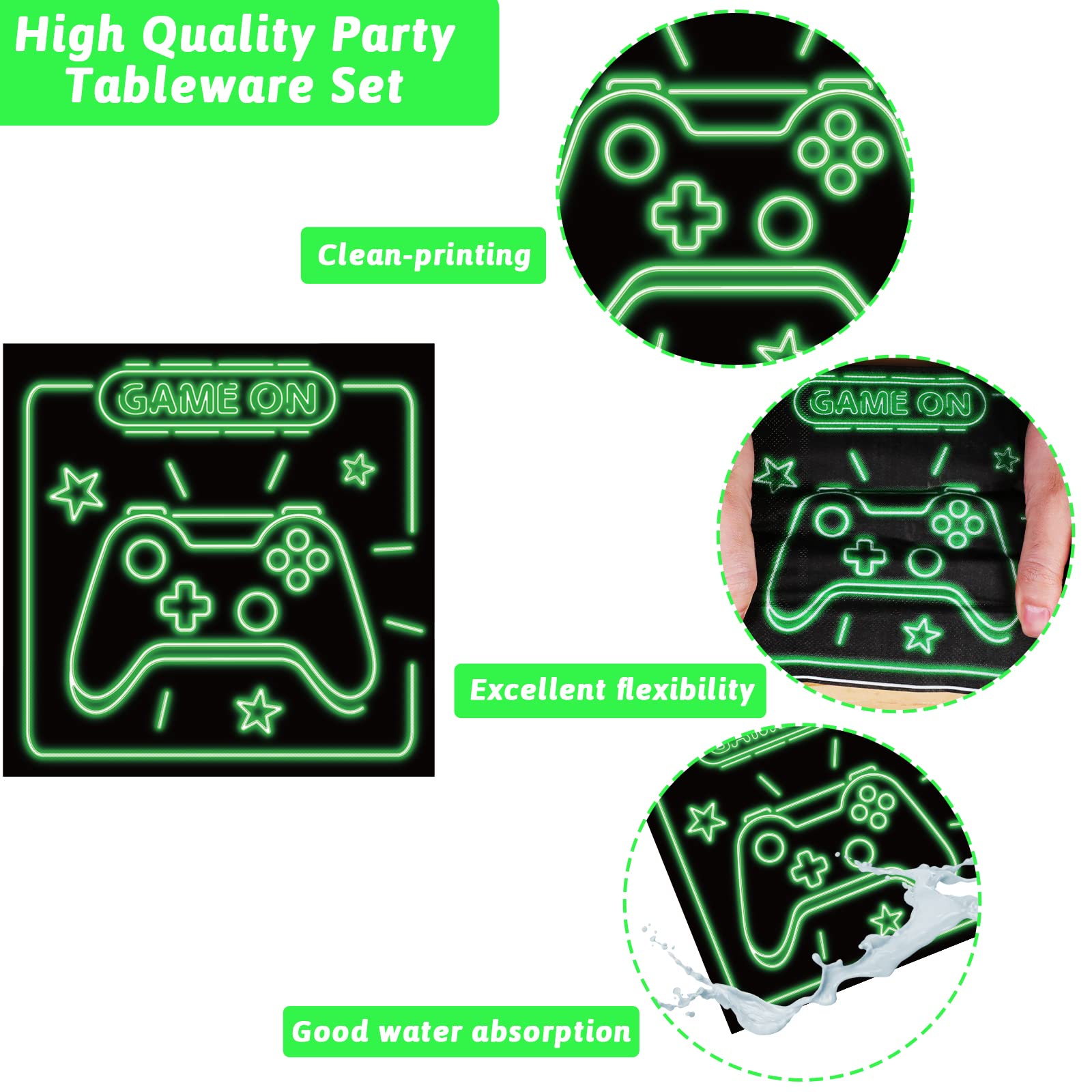 【Video Gaming Party Decoration】 Every piece of the video gamer tableware kit is decorated with gaming patterns, making it a perfect birthday party decoration for boys and girls. The video game party supplies will make your table settings look fantastic and make the birthday party interesting and unforgettable.