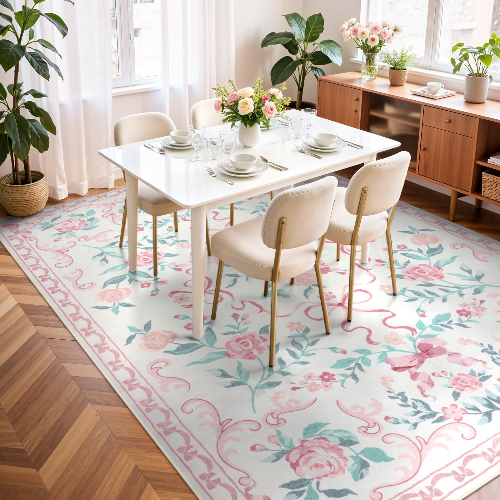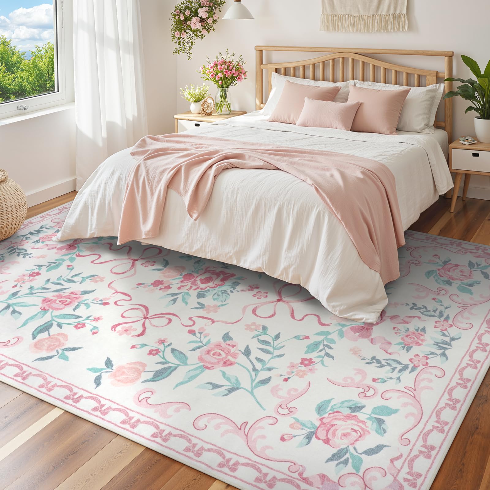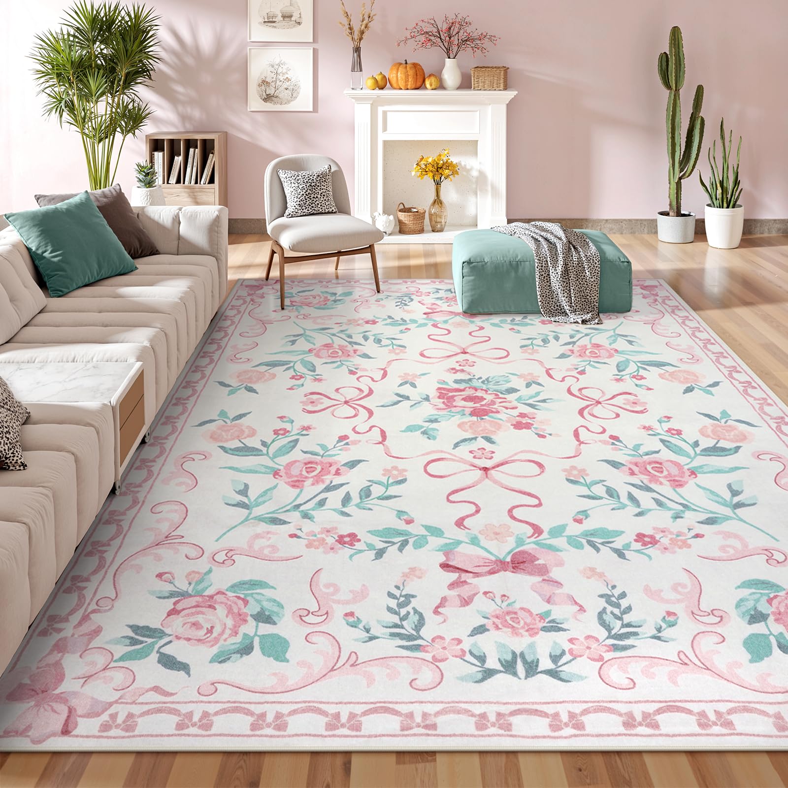 Vibrant Design: This lovely and beautiful rug is designed with a blend of bow ribbons and floral plants, combined with elegant color tones, it is a great fit for your home, giving your interior space a vibrant and elegant natural style charm