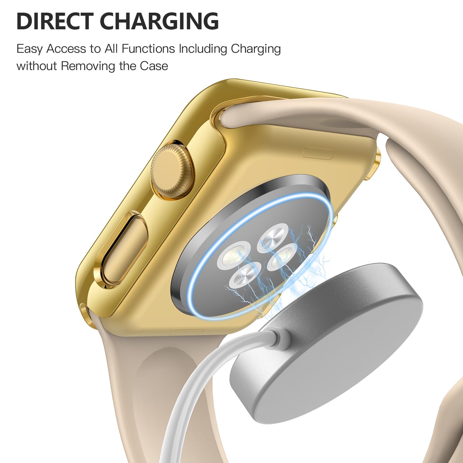 【Enhanced Scratch Defense】 Constructed from robust PC material and featuring built-in tempered glass, this case for Apple Watch Series 3 Series 2 offers full front and edge coverage, providing your iWatch with complete protection from daily wear, including scratches, drops, and impacts