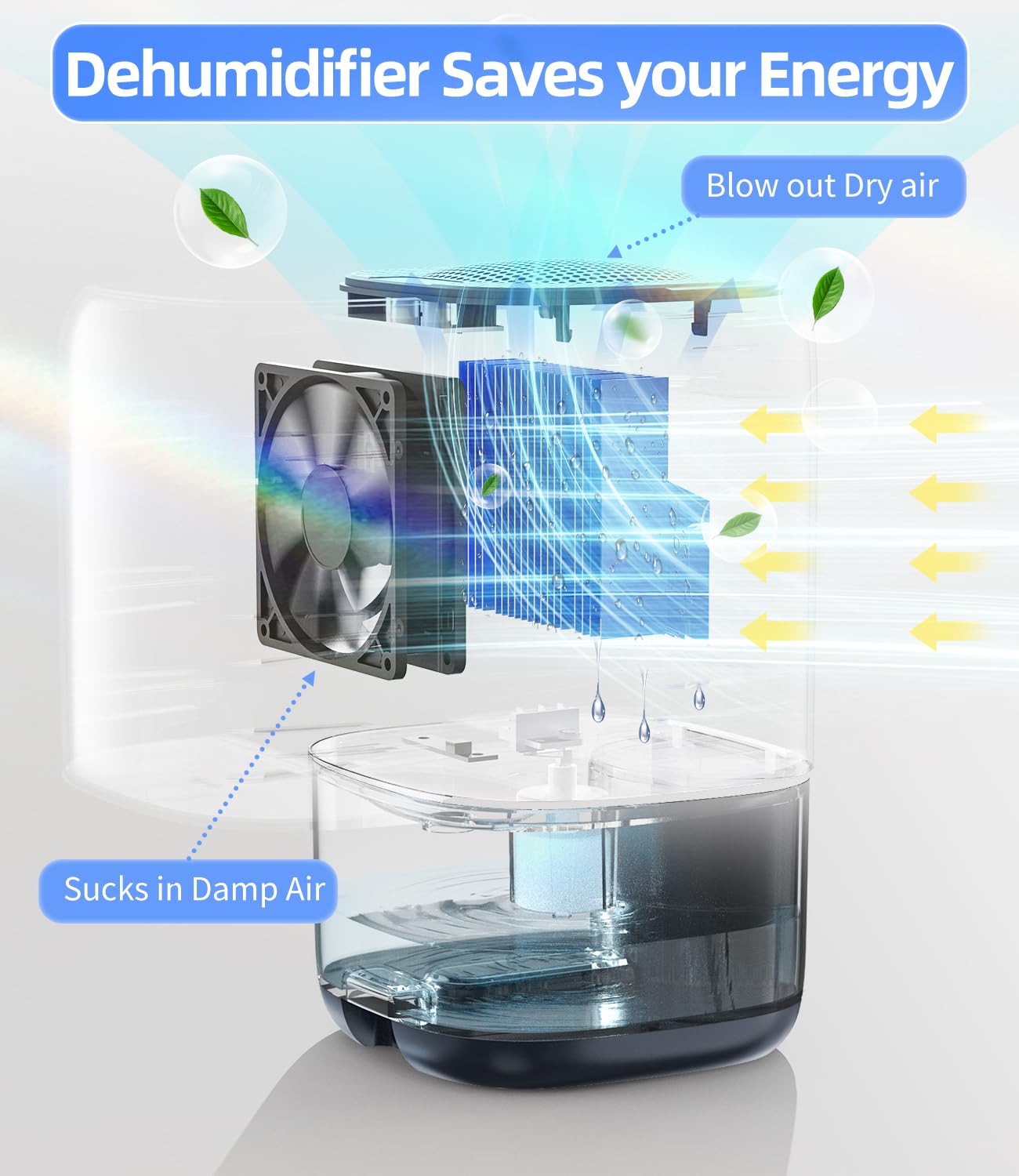 High Efficient Dehumidifiers for Home: Tired of the damp conditions? Don't fret! Just have a try at TABYIK 35OZ Peltier dehumidifier,In a confined, humid space at 86°F and 80% RH, it can extract up to 16oz (450ml) of water within 24 hours, all while consuming minimal energy (less than 1 kilowatt-hour per day)