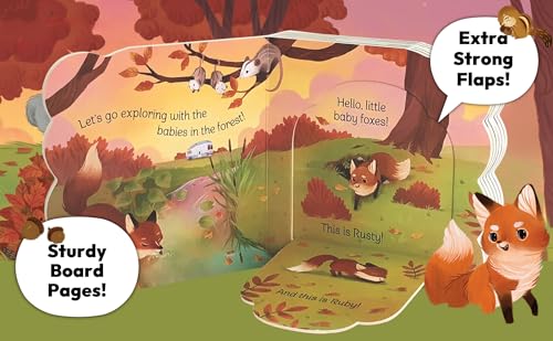 Introduce your baby or toddler to forest animals including foxes, deer, bears, beavers and more in this adorable lift-a-flap board book. Simple sentences reinforce future language structure while grasping and lifting the sturdy flaps helps develop fine motor skills. A perfect first book! Welcome to the world little one! Come explore Babies in the Forest Lift-a-Flap board book filled with surprises Perfectly sized for little hands and fingers to open and close the flaps. 6 chunky and sturdy flaps are extra strong so your little one can open and close again and again Surprise and delight baby with bright artwork and special treats under each flap Collect all the books in the Babies Love series. From colors and animals to first words and holidays, the Babies Love Chunky Lift-a-Flap series is a great introduction to reading with cheerful, contemporary, and whimsical illustrations and sturdy, easy-to-lift flaps