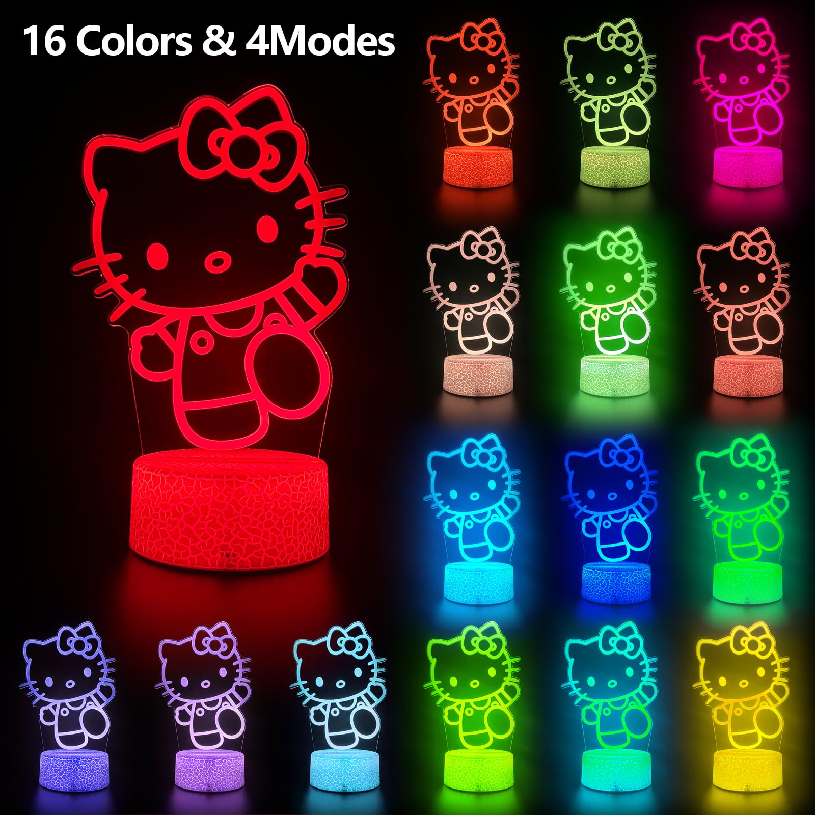 Dual Start Mode: Seamlessly switch between touch and remote control modes to suit your preference. Kitty night lamp power supply moder or wireless mode,power supply use USB cable,wireless can use three AA battery (batteries are not included).This 3D illusion lamp offers flexible functionality for a personalized lighting experience.