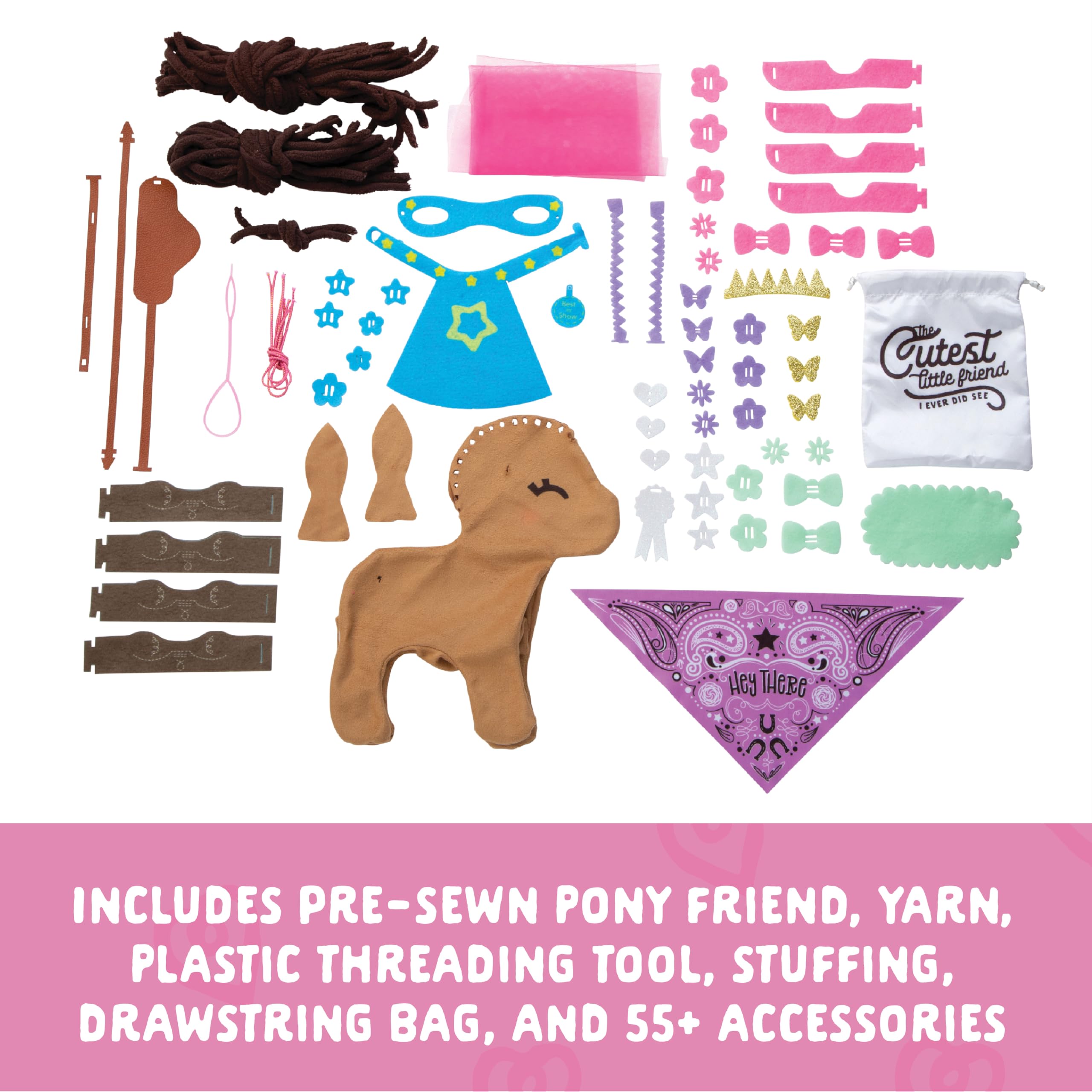Everything You Need: This kit comes with everything you need to Make A Plush right in the box, with a pre-sewn pony, stuffing to make it nice and squishy, yarn and a threading tool to close it up and add the tail and the mane, and tons of accessories for dressing up your pony friend!