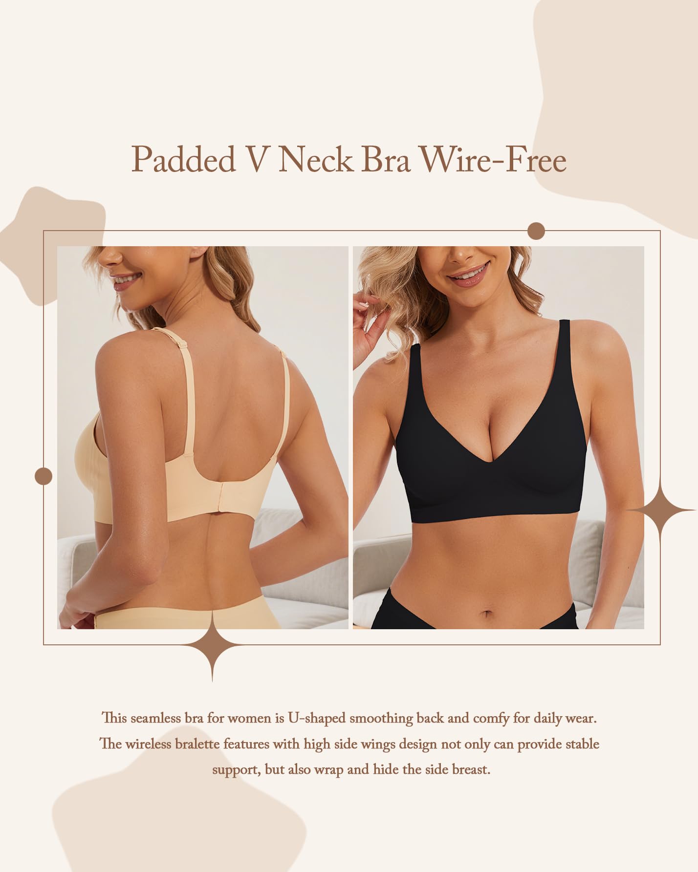 [Versatile Occasion & All Match - Bralettes for Women]: This wireless bra is an ideal choice for date, prom, party, home and casual daily match; wearing our v neck bra under top, t-shirt or dress, enjoy a seamless look that will complement any outfit
