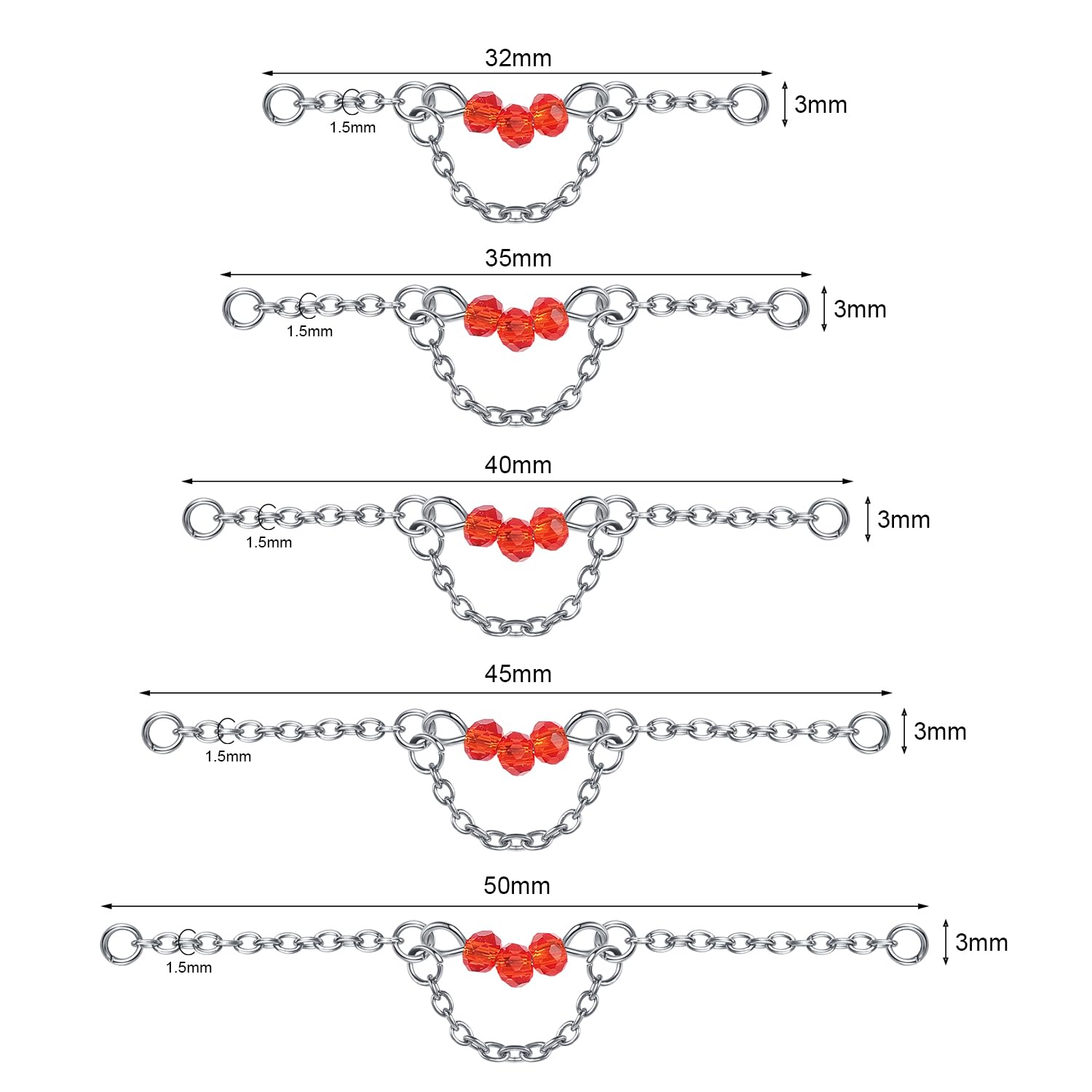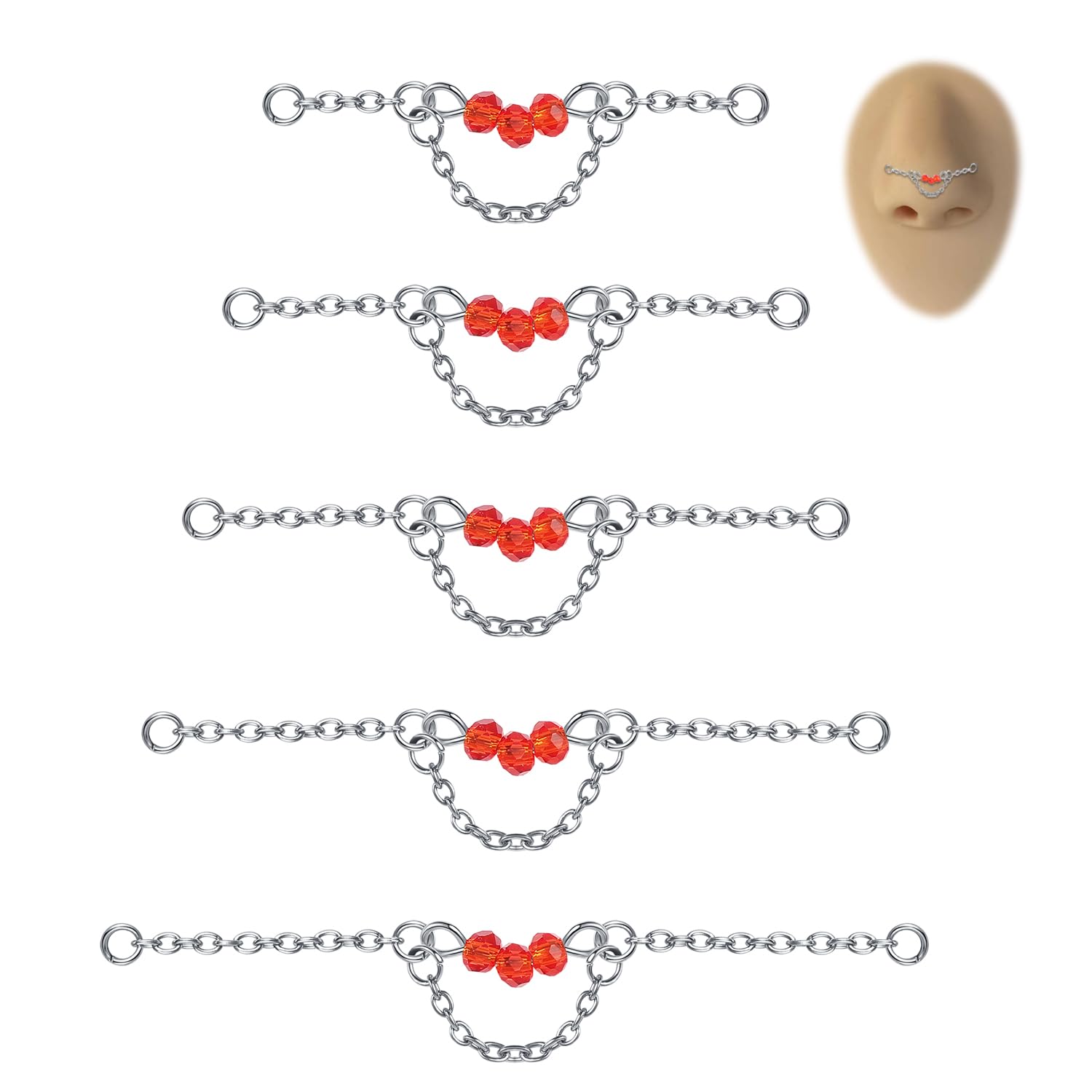 ★Packaging & Size: Five different sizes of nose ring chains, 32mm, 35mm, 40mm, 45mm, 50mm, meet your wearing needs for different parts. (This set does not include nose studs, nose rings, or earrings)