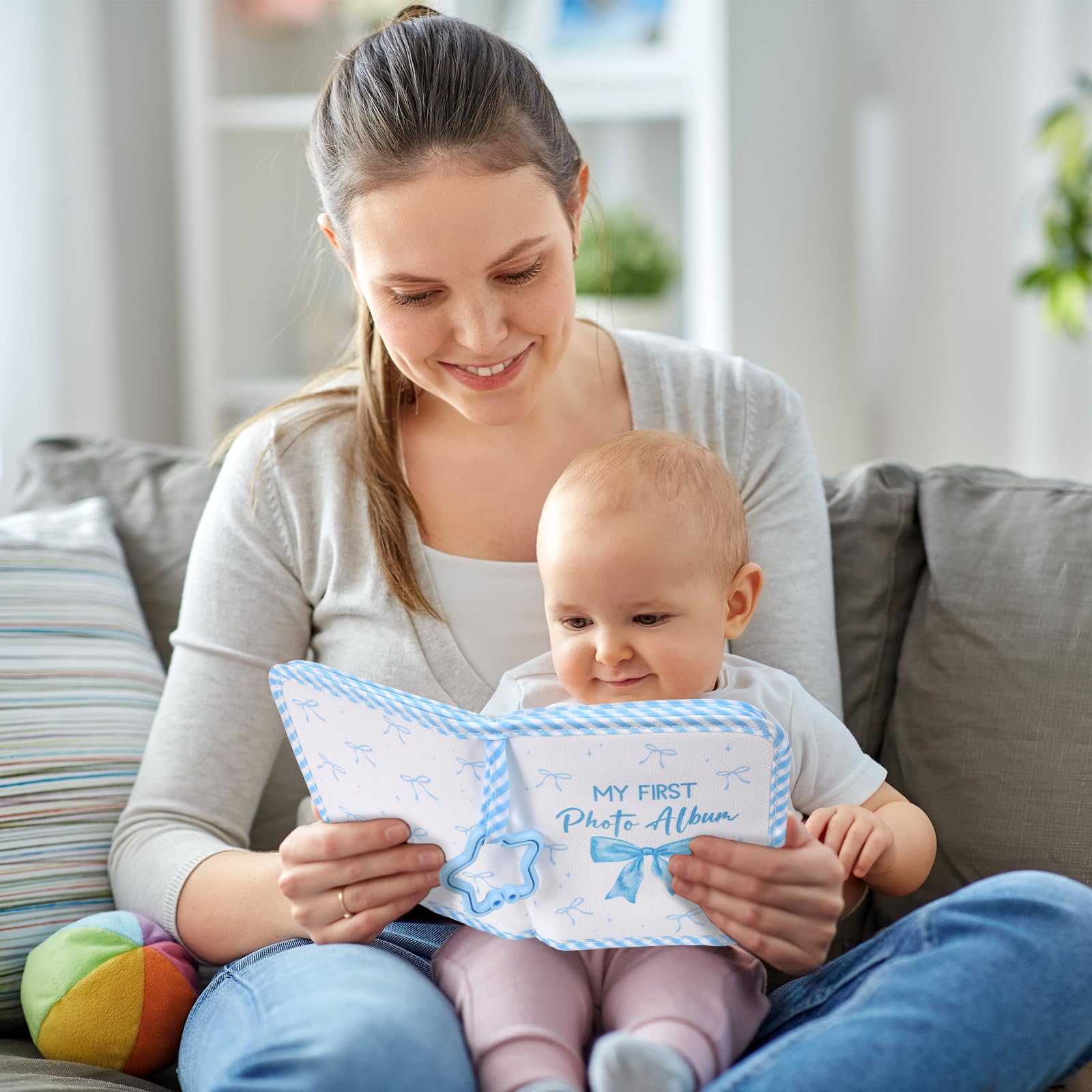Adorable design: With its warm, pastel blue color and delicate bow embellishment, this baby memory book exudes sweetness and charm. The cover is printed with the words "MY FIRST Photo Album" in a stylish font, making it the great way to document your baby’s growth and family moments. The simple yet elegant design makes it a timeless keepsake for both parents and little ones.