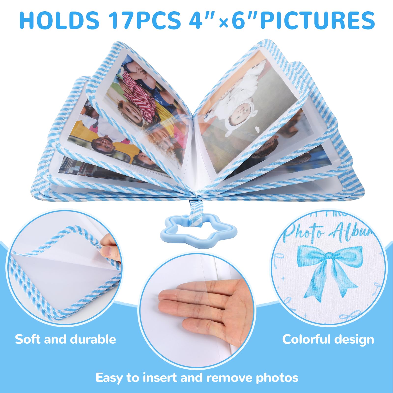 Super value pack: This blue bow first family photo album is designed to hold up to 17 sheets of 4x6 inch photos, making it the ideal baby photo album to capture your little one’s milestones. With secure hooks for hanging and a small mirror on the back, it's a delightful addition to your baby scrapbook collection.