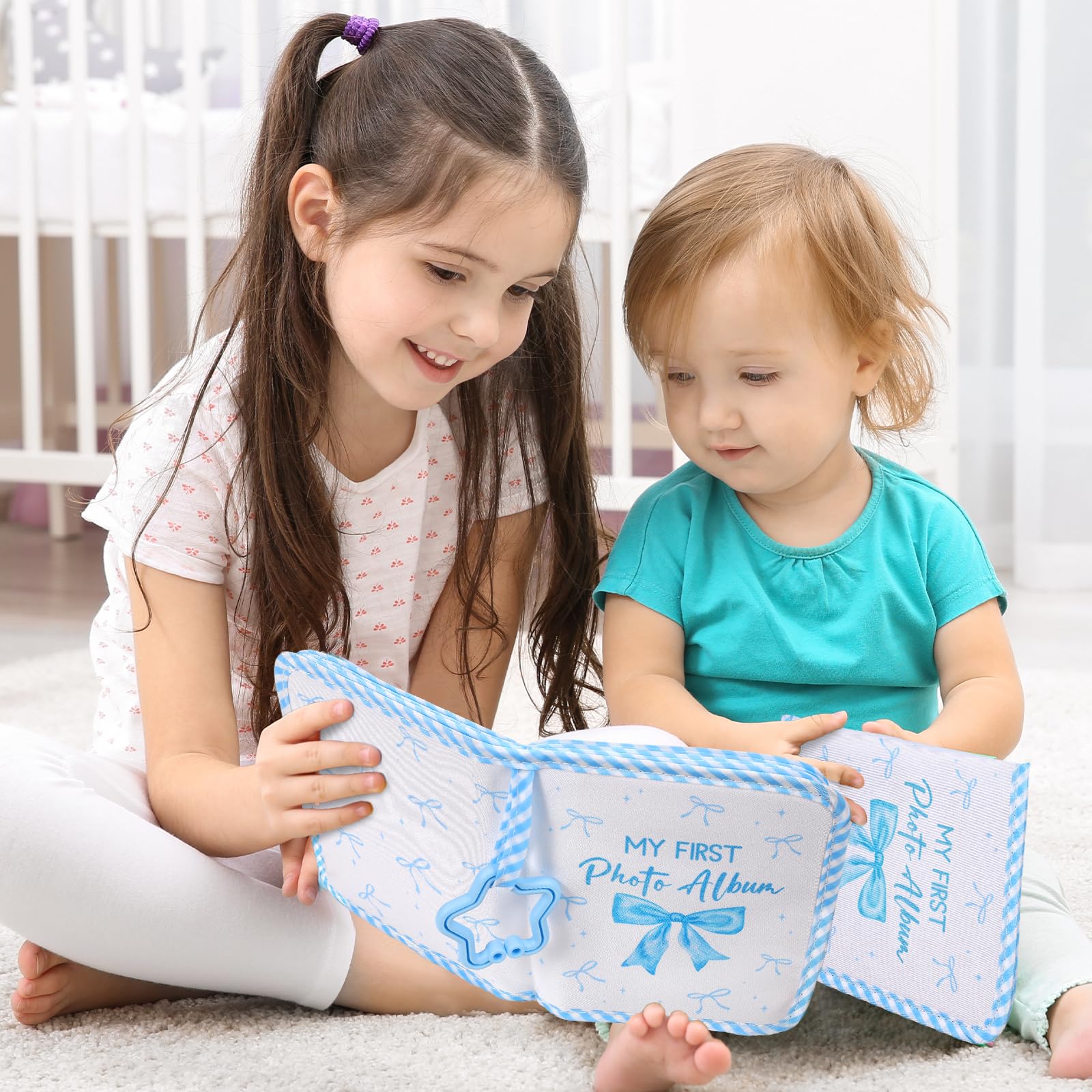 Baby's My First Family Album Soft Photo Cloth Book Blue Bow My First Book of Photos Coquette Bow Baby Memory Album Gift Holds 4x6 Pictures for Babies Newborn Toddler & Kids Baby Shower Capture the precious moments of your baby’s early years with this beautifully crafted blue Bow Family Photo Album. Designed with love and attention to detail, this album is not only a storage solution for your baby’s most cherished memories but also a stunning keepsake that adds a touch of sweetness to any nursery or family space. Specifications: Material: Premium Cloth Size: 7.1x5.5 inches (18 x 14cm) Color: blue white Package Includes: 1 x Baby's My First Family Album Whether you’re looking for a thoughtful gift for a baby shower, a gender reveal, or a newborn’s first few months, this blue Bow Photo Album is a great choice. Its playful design and practical features make it a delightful gift that will be treasured for years. It’s also a great option for first-time moms who want to document their baby’s growth from the very beginning, creating a keepsake that can be passed down through generations.