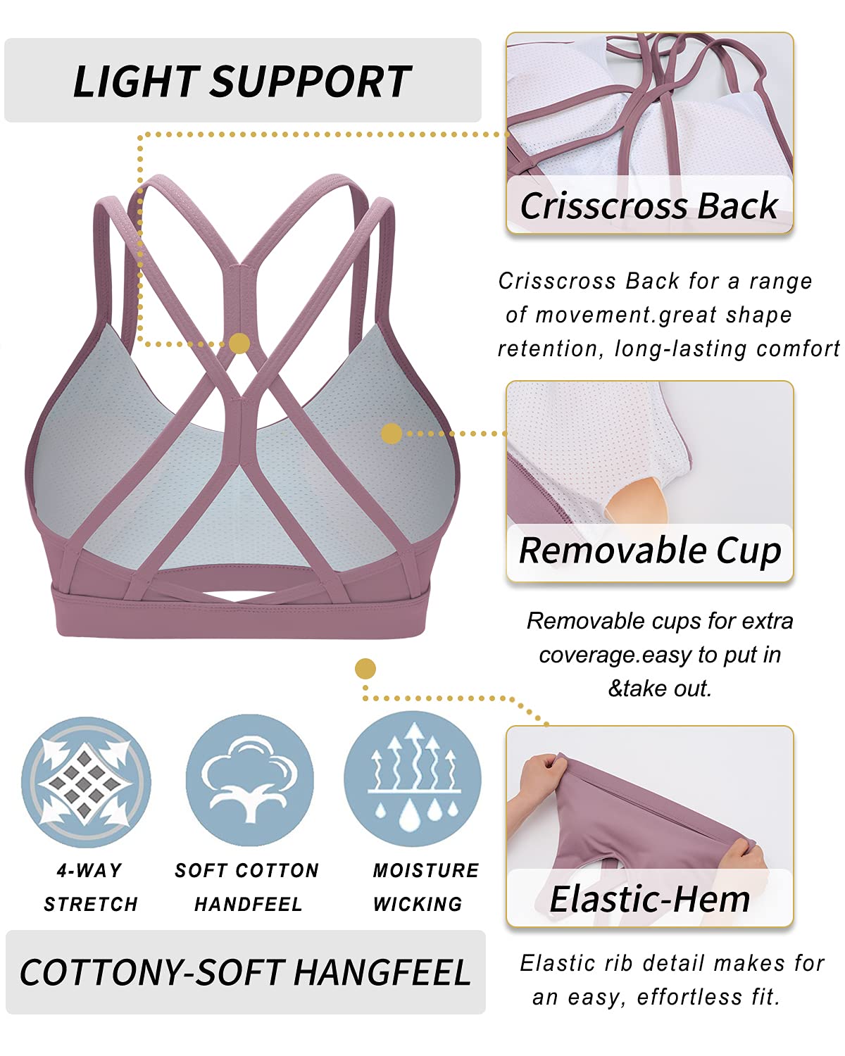 CRISSCROSS-BACK SPORTS BRA:RUNNING GIRL sports bras for women detailing gives the womens sports bras with Crisscross its signature style.But it doesn't just look good,it's hard working.And the running sports bra for women wrapped in durably soft performance stretch fabric keep you comfy and supported.The cotton-like meterial,soft and comfortable to wear.High support sports bras for women let you twist with ease,running bras for women high impact design offers a extra back support.