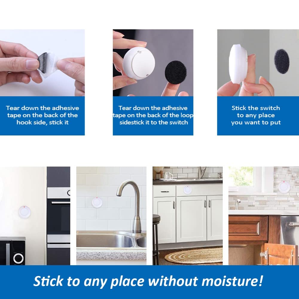 Dual-Purpose Remote Switch: The button can be glued to any dry places such as walls or cabinet doors. Or be taken off and used as a portable remote, which allows you to place it anywhere