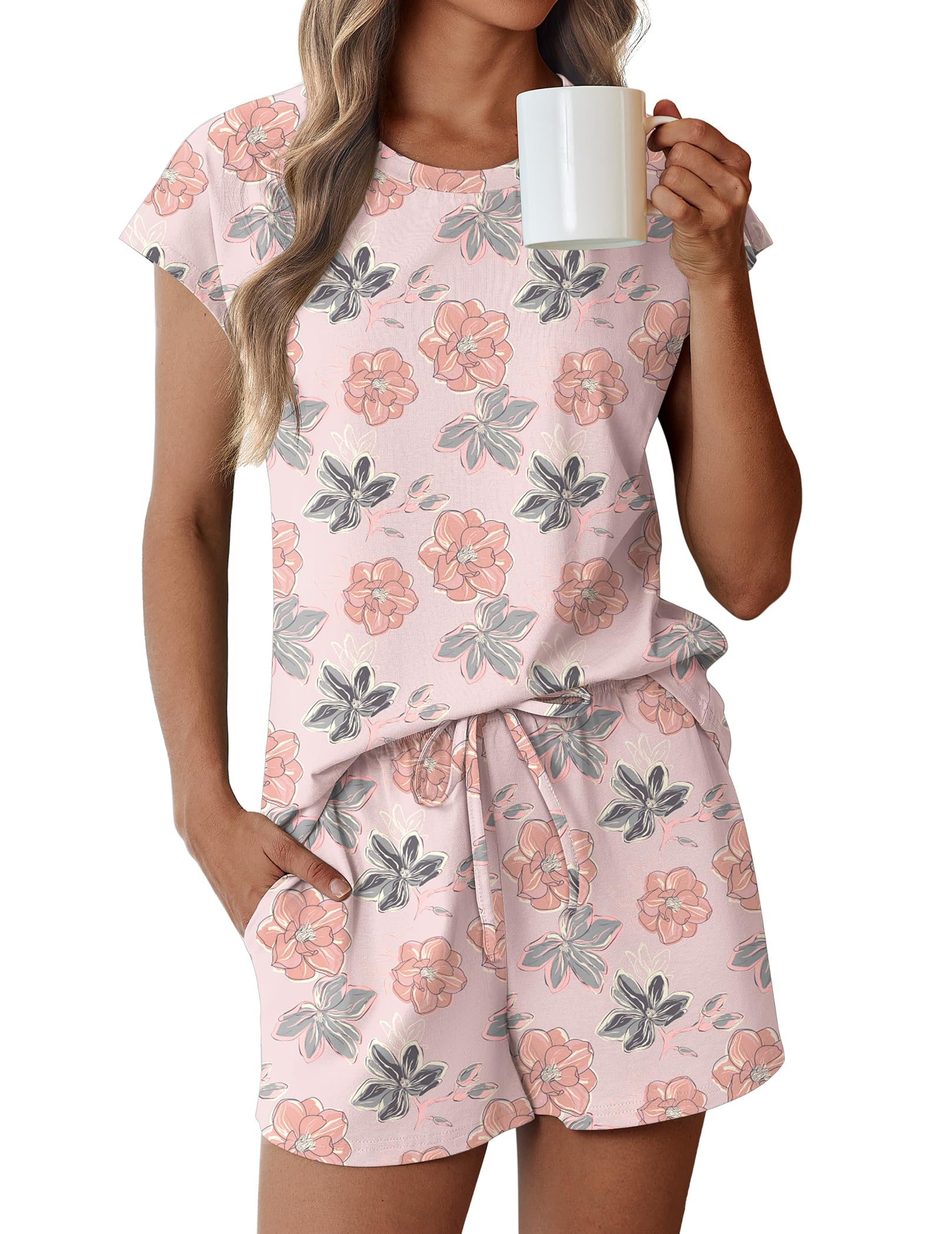 Comfy Material: Made of 60% cotton, 40% polyester, soft, non-irritating, superbly breathable, offers gentle give while maintaining its shape, summer pajama short sets bring you comfy skin touch feeling.