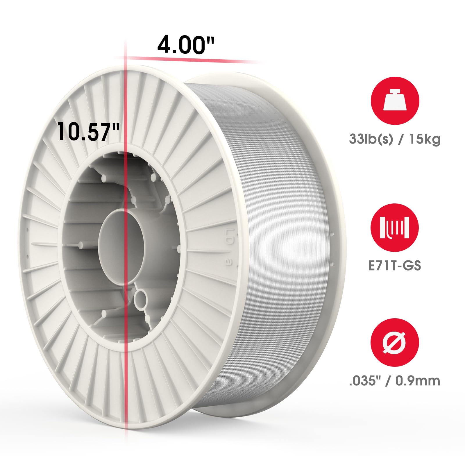 E71T-GS FLUX CORE WIRE: This self-shielding, AWS E71T-GS flux-cored wire excels due to its advanced core design, delivering exceptional arc stabilization and high feedability for effortless welding. The core also incorporates powerful deoxidizing agents, ensuring clean, reliable welds even when welding through light rust or mill scale.