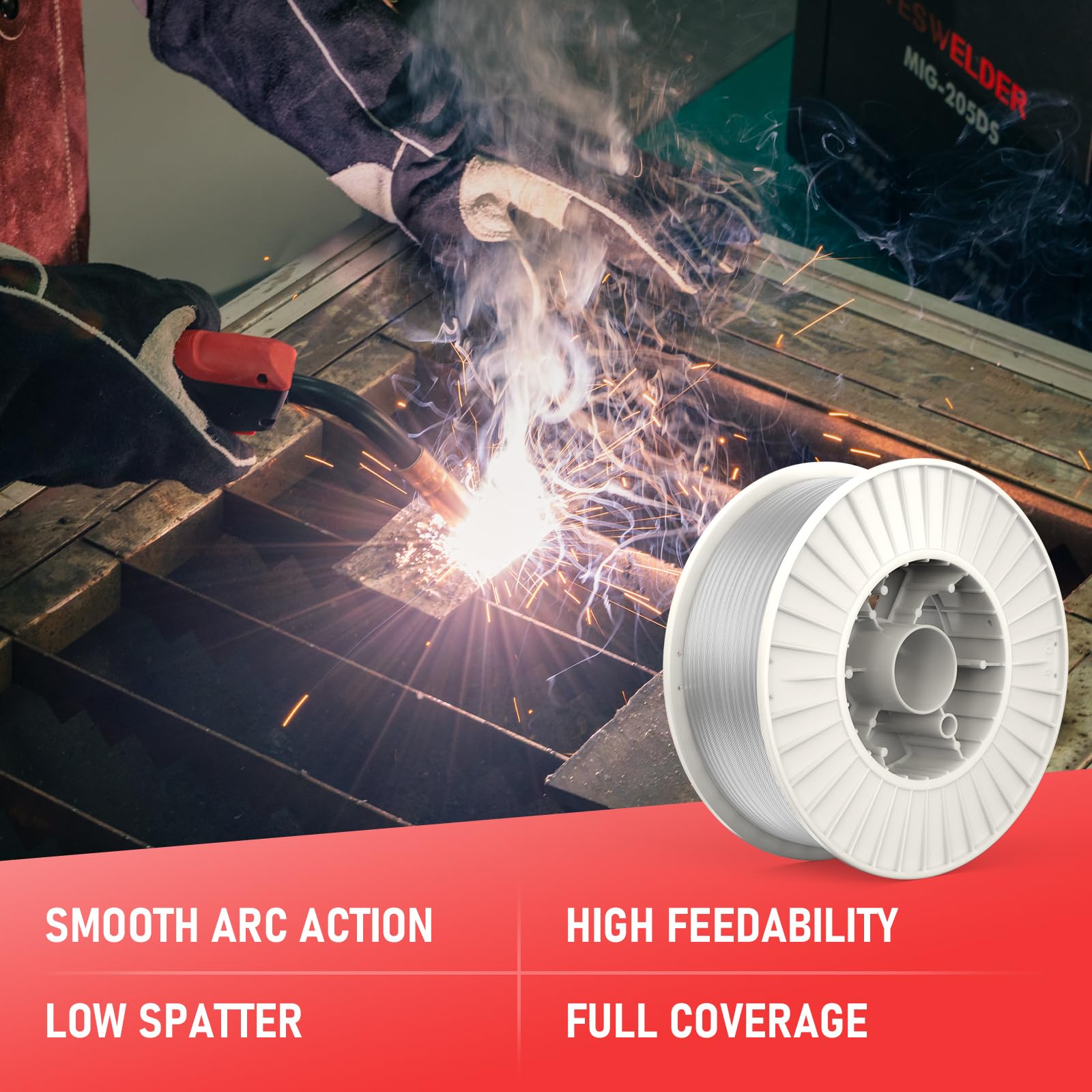 VERSATILE APPLICATIONS: Ideal for outdoor windy conditions, thanks to its self-shielding design, eliminating the need for external shielding gas. It excels in all position welding, including flat, vertical, up, corner welding. The self-shielding nature also enhances its portability and convenience.