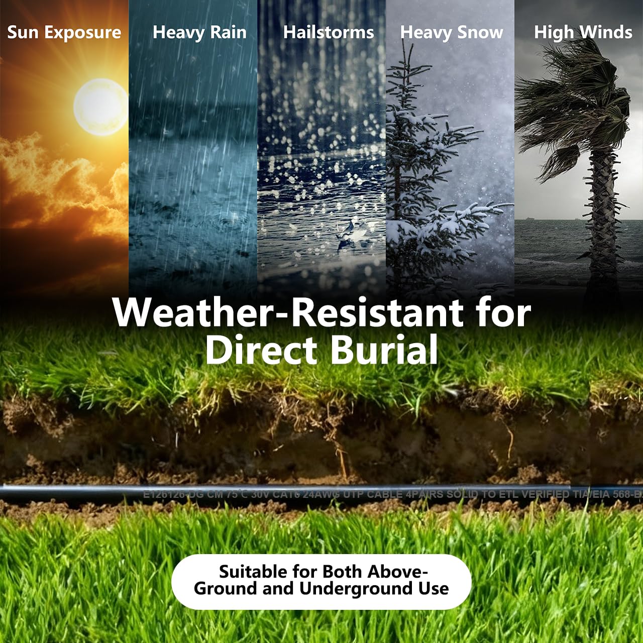 【Direct Burial and Waterproof】: Designed for outdoor use, our cable is direct burial-ready and features a waterproof, UV-resistant jacket, providing durability in any weather condition.