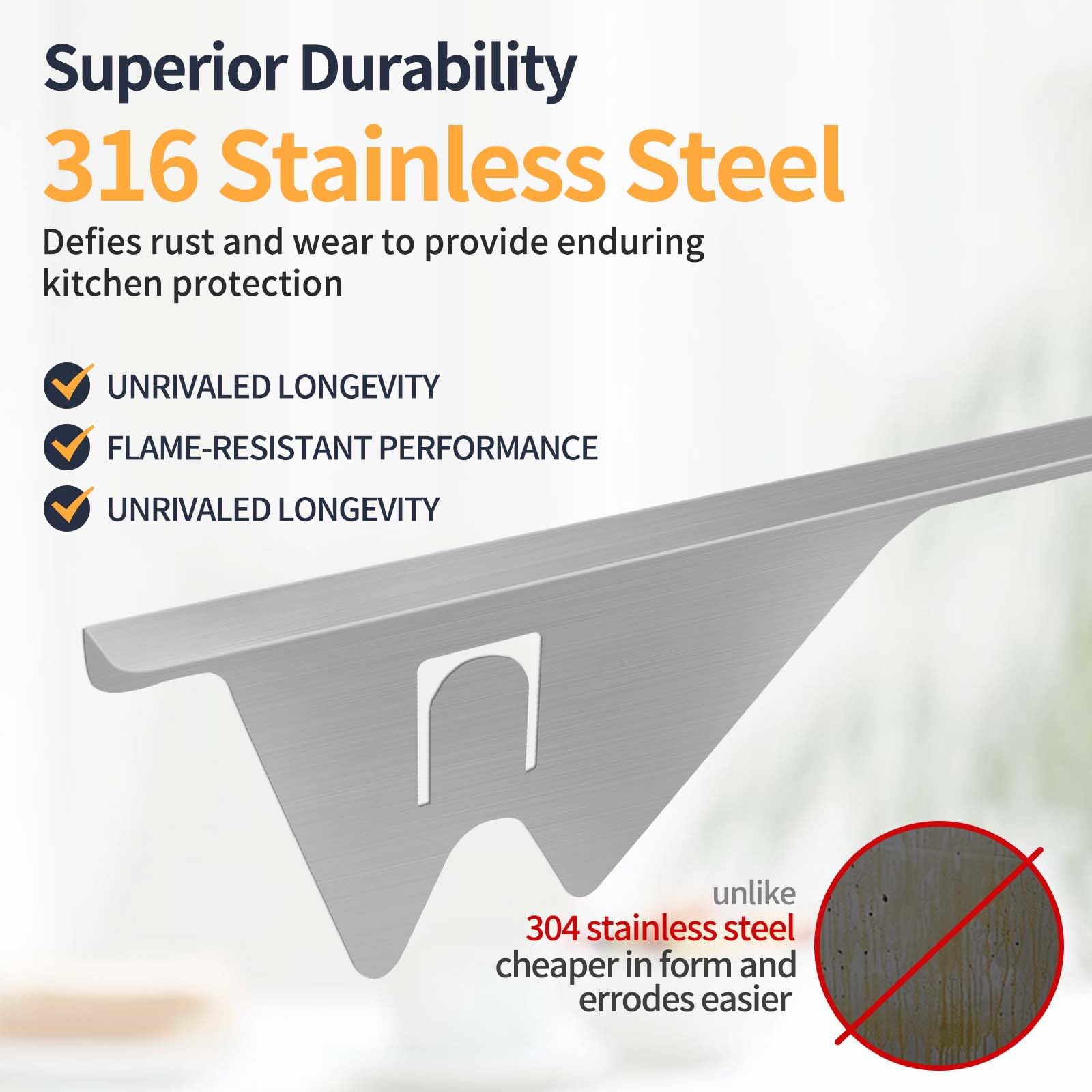 PREMIUM 316 Grade Stainless Steel Build – Crafted from surgical-grade 316 stainless steel, our updated metal gap fillers offer outstanding resistance to corrosion and high heat. Engineered for superior toughness and longevity, they withstand the most demanding kitchen environments with ease.