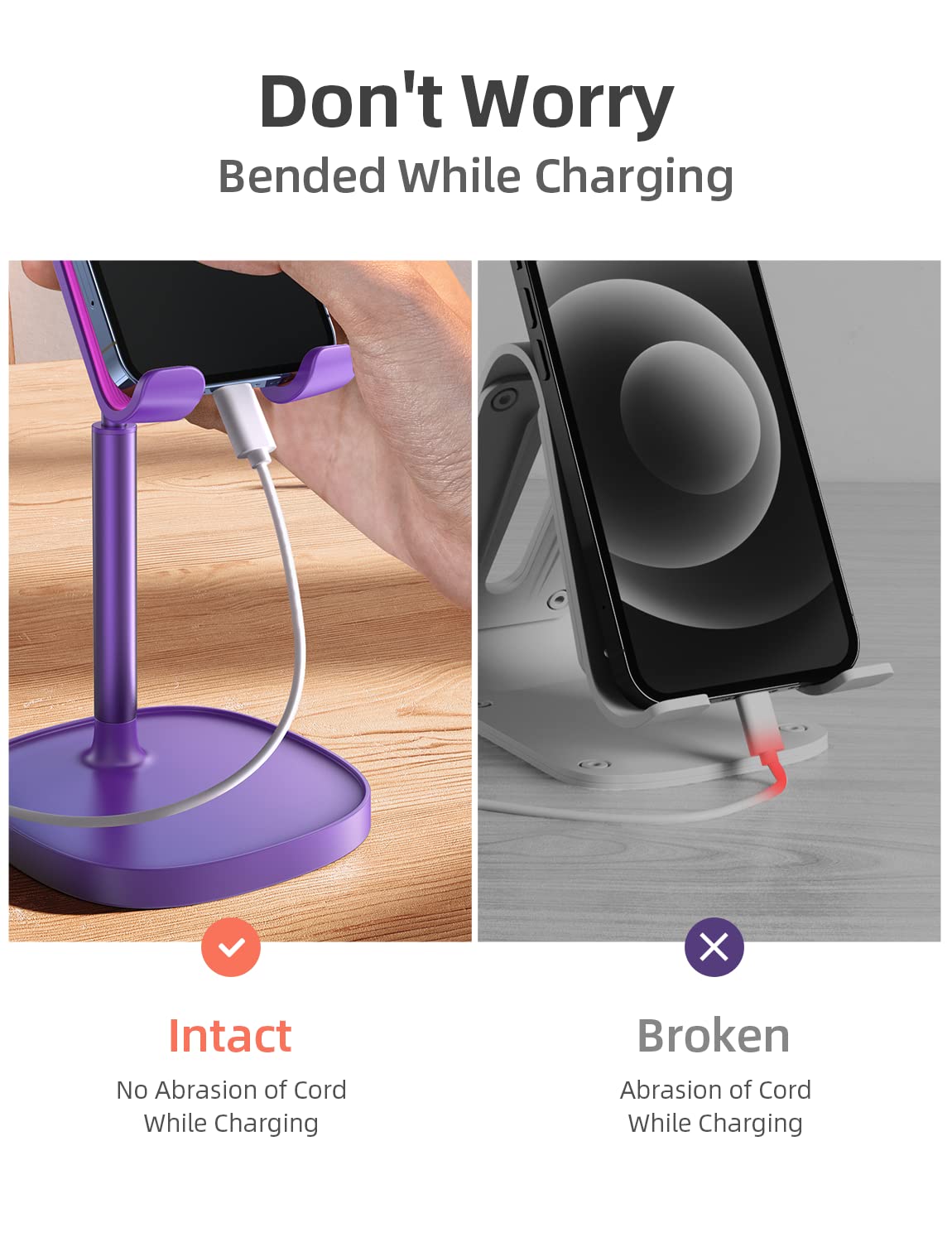 TALLER AND MORE PHOTOGENIC STAND, HELP TO CORRECT THE "TEXT NECK": This cell phone stand holder is in accordance with ergonomic design. Providing you comfortable viewing angle which helps to fix your posture and reduce neck & back strain. The height can be easily adjusted between 7.1in-8.5in(1.4in adjustable range), the angle is adjustable between 5°~85°