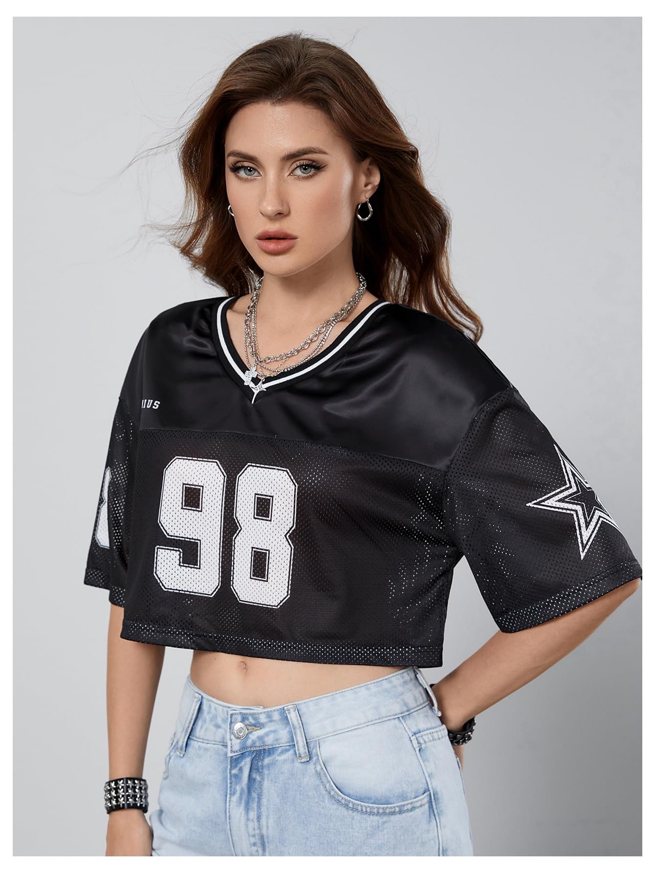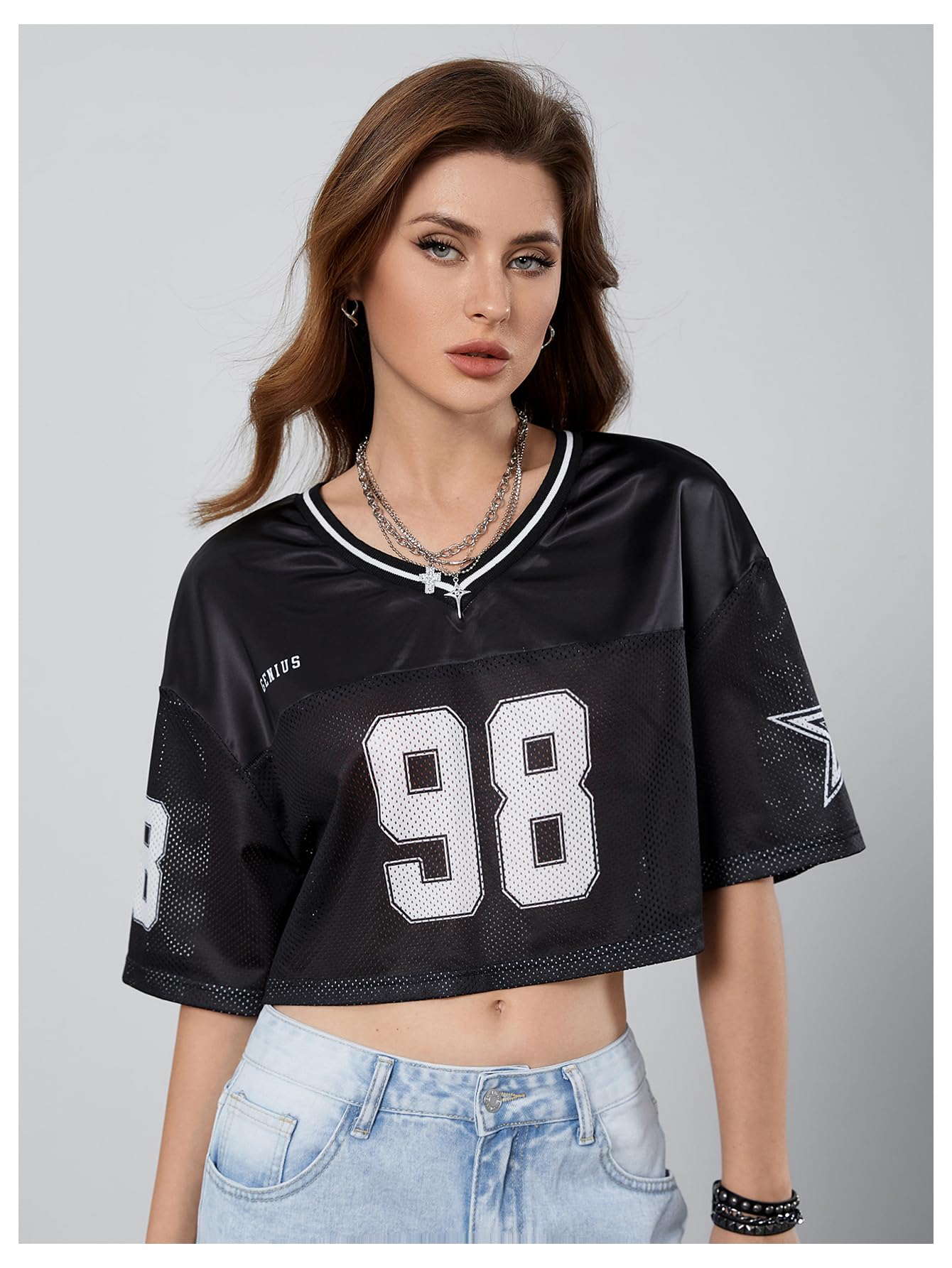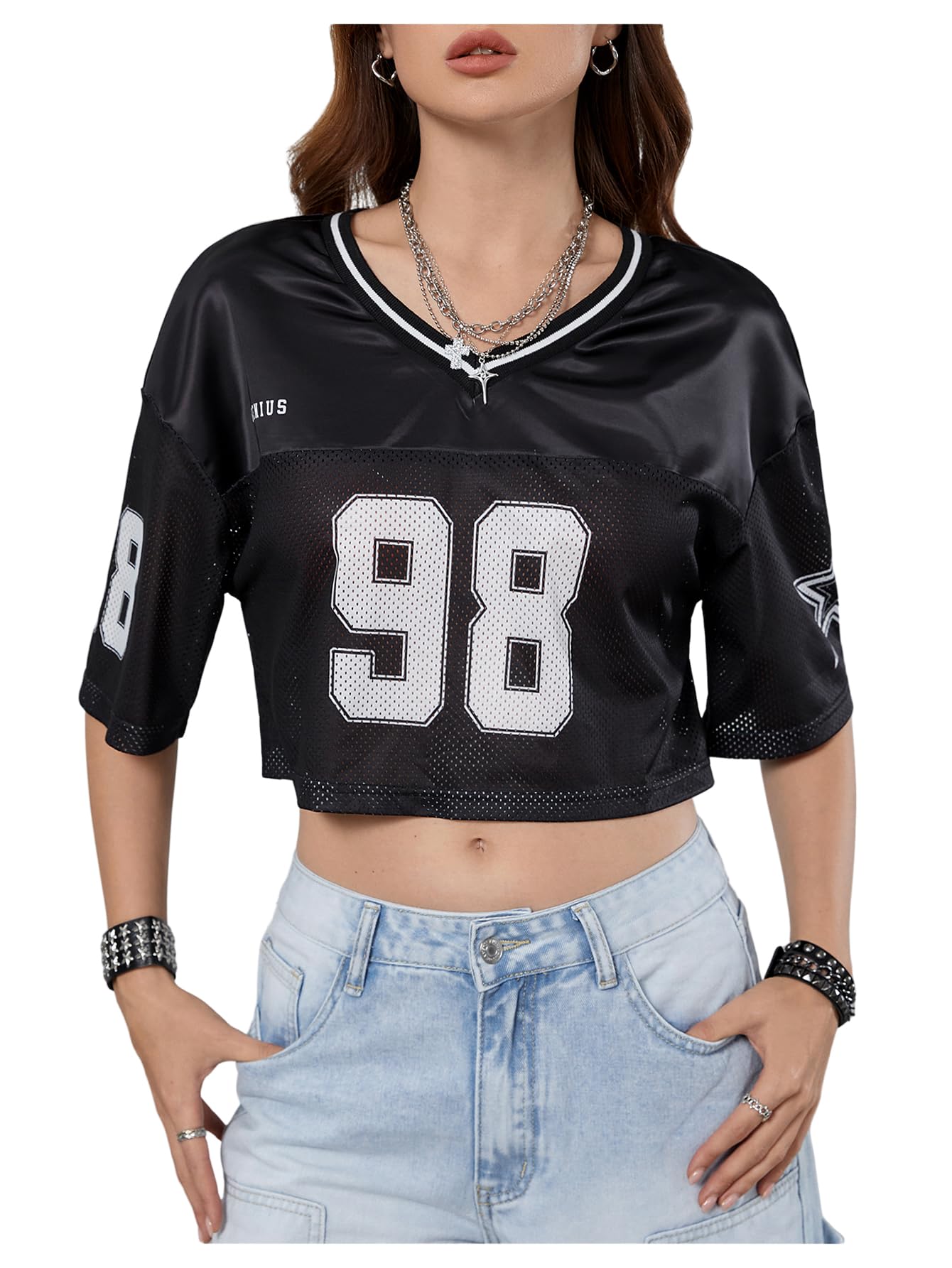 Number graphic t shirts, casual summer tops, contrast binding, y2k style, womens t shirts