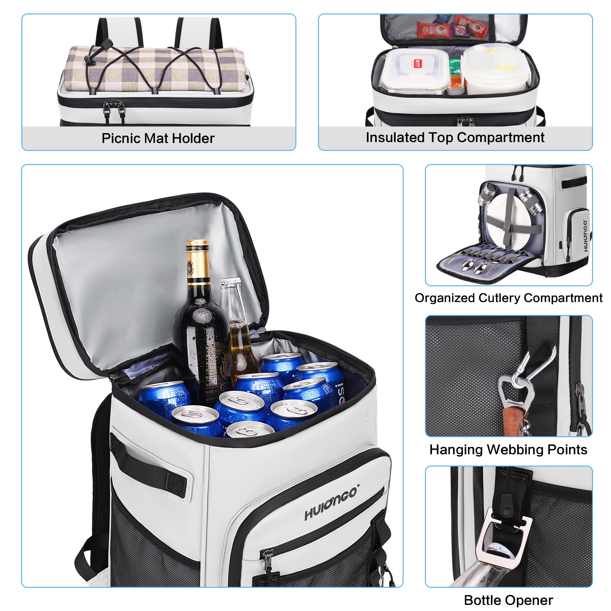Exceptional Heat Retention: Hulongo cooler backpack is designed to keep your beverages and food cool for up to 12 hours with its thickened 8 mm foam insulation and advanced silver PEVA seal. Whether you're heading to the beach, going on a picnic, hiking, camping, grocery shopping, this backpack will ensure your items stay at the right temperature throughout the day
