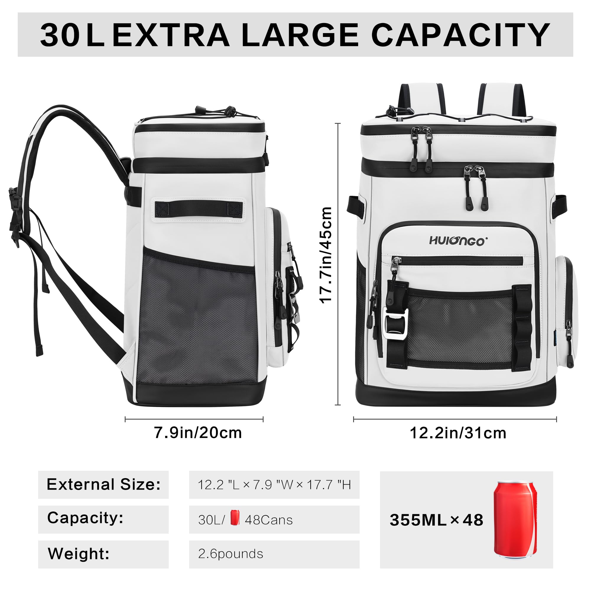Spacious Capacity: With dimensions measuring 17.7''x12.2''x7.9'' (H x L x W), our cooler backpack can accommodate up to 35 cans (330 ml). It offers enough space to pack meals, tall beverages, snacks, and other necessary items. It makes for a perfect gift for both men and women due to its large capacity and versatility