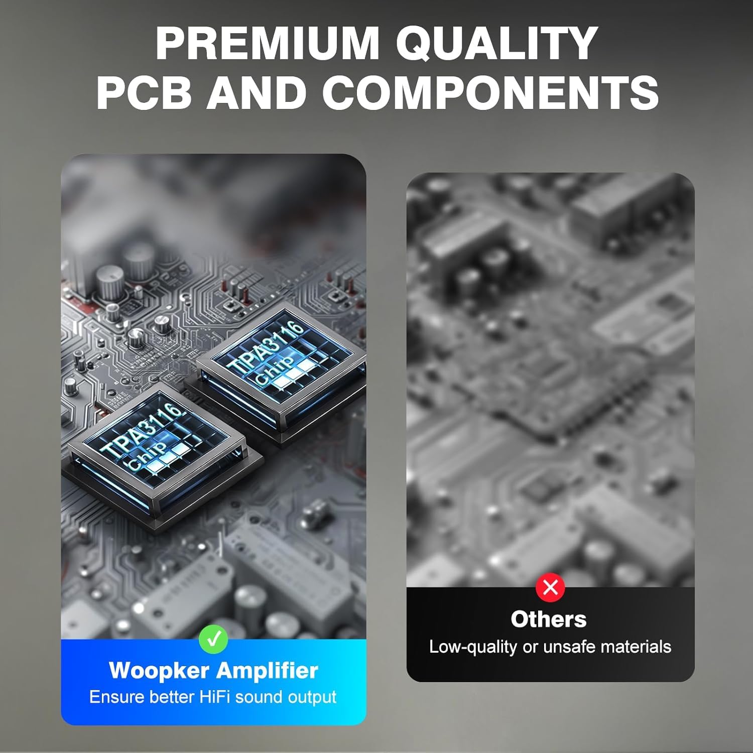 【Bluetooth 5.3】AK3116 Bluetooth amplifier featuring the latest Bluetooth 5.3 for superior audio output, which delivers powerful and clear stereo sound. It offering a robust connection range of up to 60 feet, allow the amplifier to stably connect to various Bluetooth devices, ensuring a high-quality wireless connection while optimizing audio transmission for accurate and clear playback