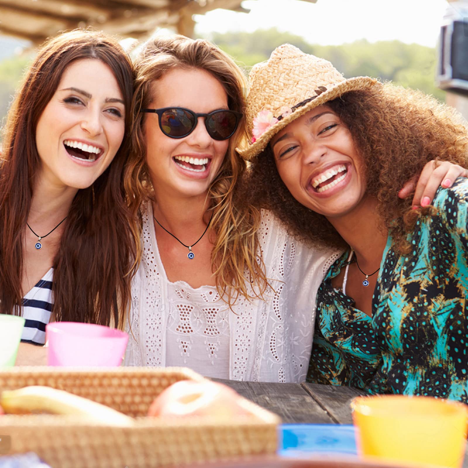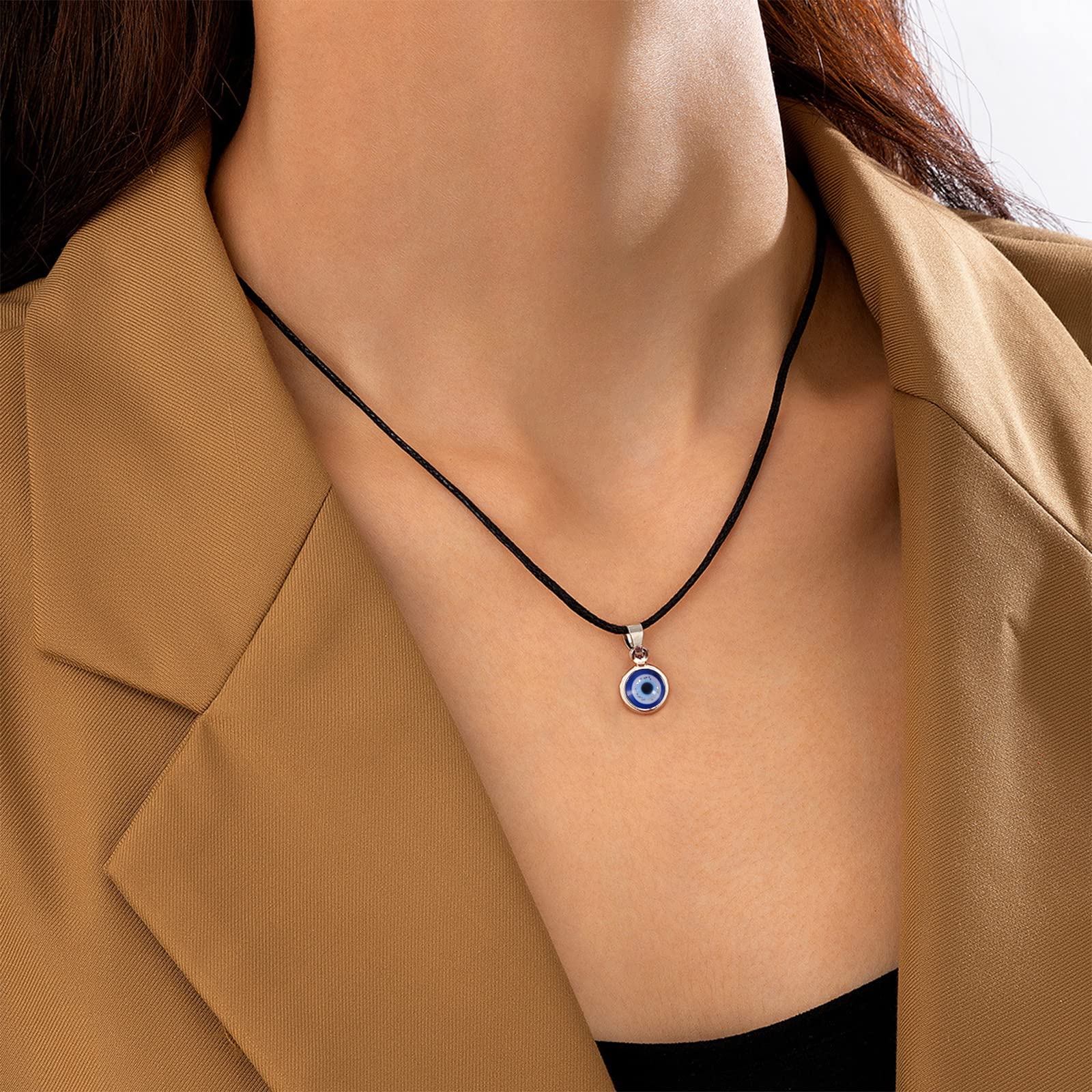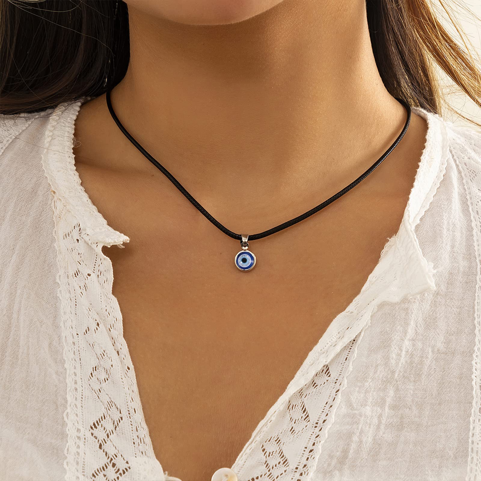 🧿 MATERIAL: The eye charm made of glass,never fade,last forever. And the chain of necklace is made of high quality leather rope, Strong and durable.