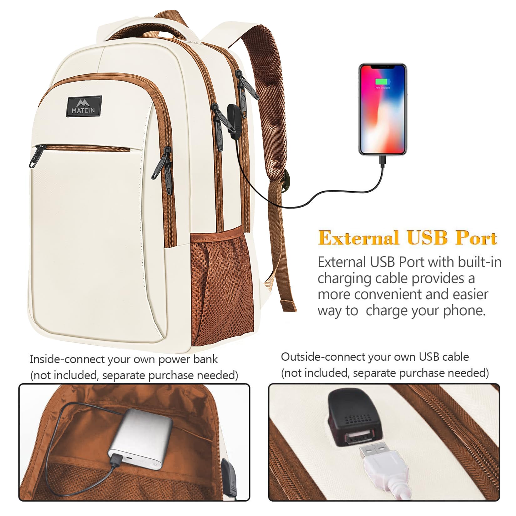 USB PORT DESIGN: With built in USB charger outside and built in charging cable inside,this usb laptop backpack offers you a more convenient way to charge your phone while walking. Please noted that this backpack doesn't power itself, usb charging port only offers an easy access to charge