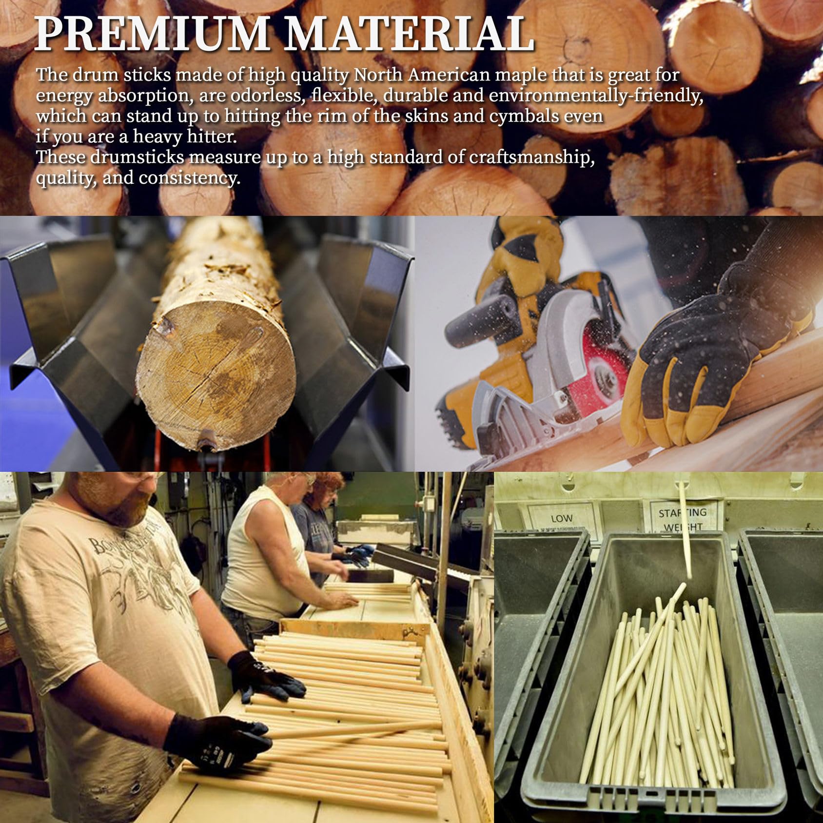 STRONG & DURABLE MAPLE DRUMSTICKS - Crafted from premium North American hard maple, these drumsticks offer unmatched strength, durability, and a substantial sense of gravity, allowing you to exert precise control over your performances with confidence.