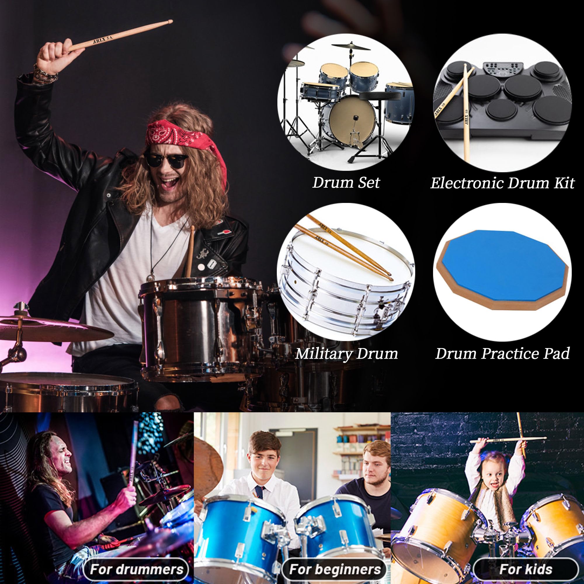 PERFECT FOR ALL DRUMMING ENVIRONMENTS - Whether you're playing on a drum set, practice pad, or electronic drum kit, our drumsticks deliver consistent performance and reliable sound quality in any drumming environment.