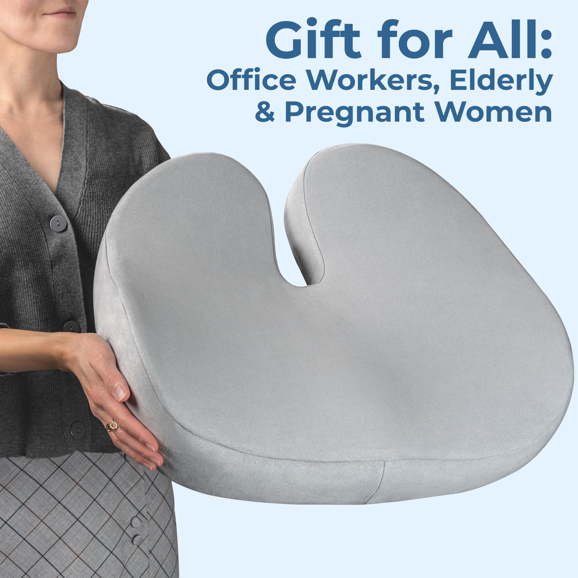 𝗖𝗹𝗼𝘂𝗱-𝗹𝗶𝗸𝗲 𝗖𝗼𝗺𝗳𝗼𝗿𝘁 & 𝗣𝗿𝗲𝘀𝘀𝘂𝗿𝗲 𝗥𝗲𝗹𝗶𝗲𝗳 𝗖𝘂𝘀𝗵𝗶𝗼𝗻: Distributes your weight evenly. Takes the pressure off your tailbone. Alleviates lower back, coccyx, sciatica, lumbar, and pelvic pain