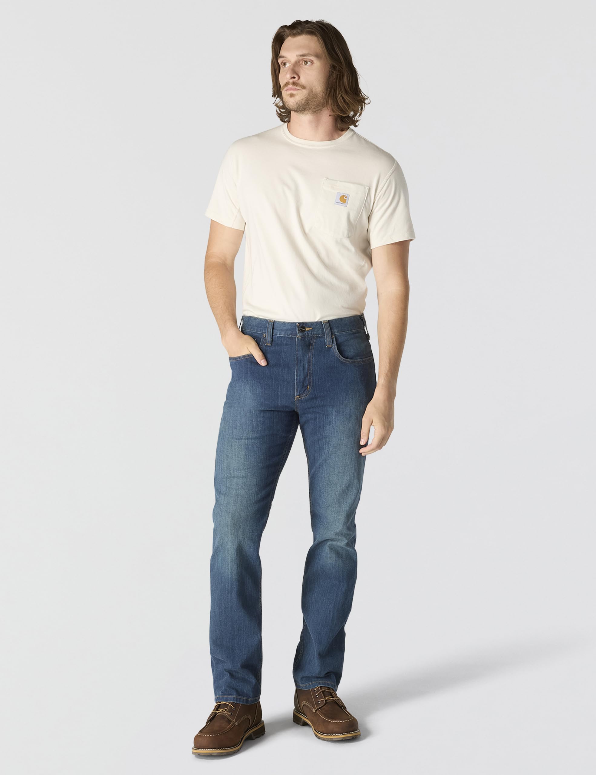 Description Double shifts or 14-hour days. These men's jeans can stand up to almost anything. They're made of our most durable, abrasion-resistant denim with enough stretch for easy movement. The straight-leg jeans are cut for a relaxed fit, with extra room in the seat and thigh.