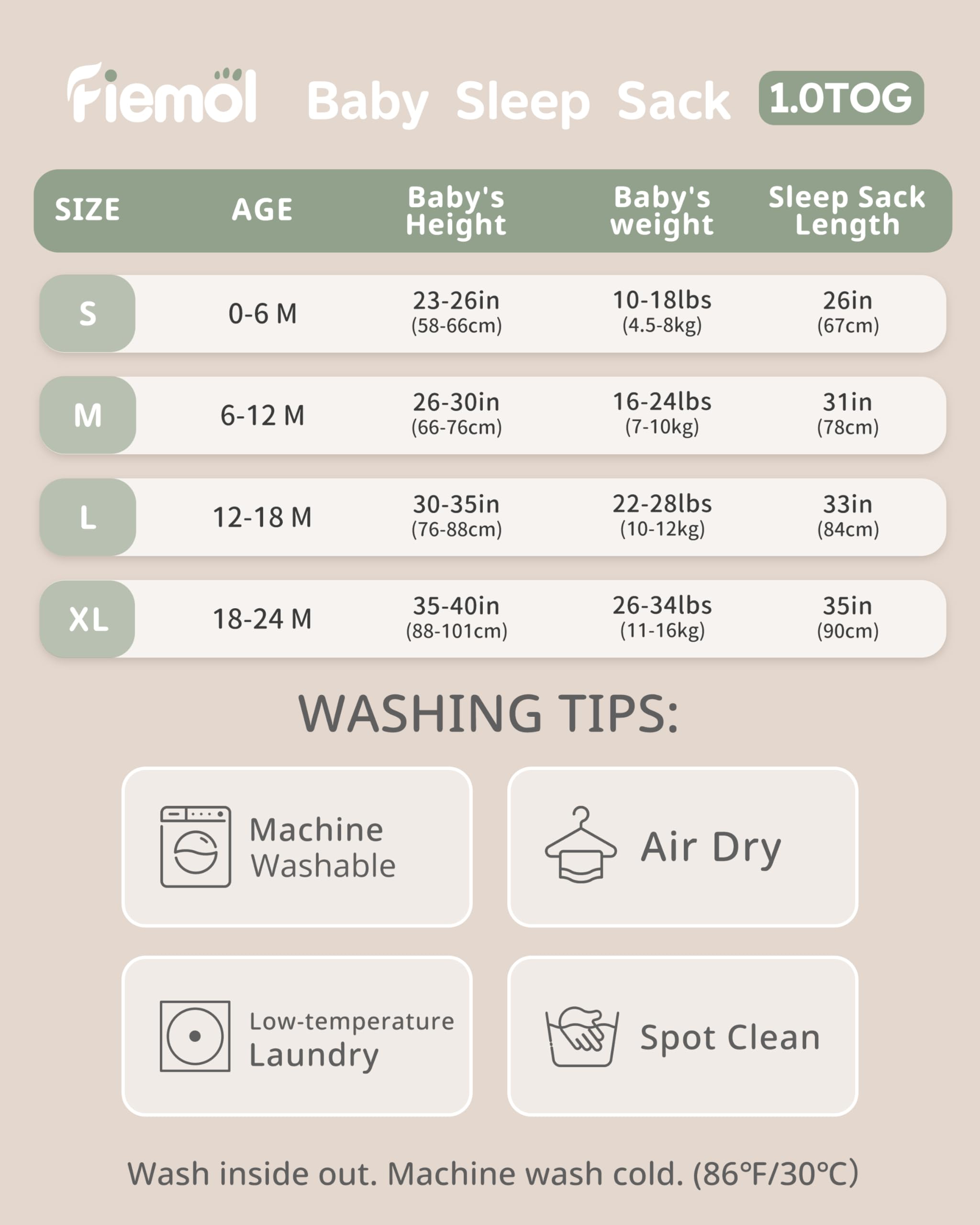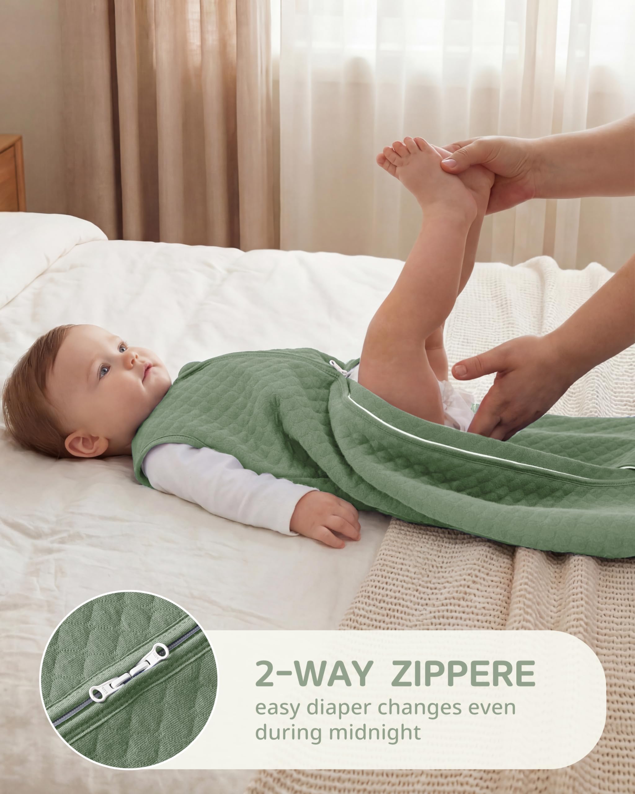 Double Zipper: Unlike traditional blankets or bedding, this Fiemol sleep sack features a convenient two-way zipper for easy diaper changes or outfit adjustments—without fully unwrapping your baby. Designed to make parenting life easier, you do not have to worry about kicked-off covers as the sleeping sack stays in place all night.