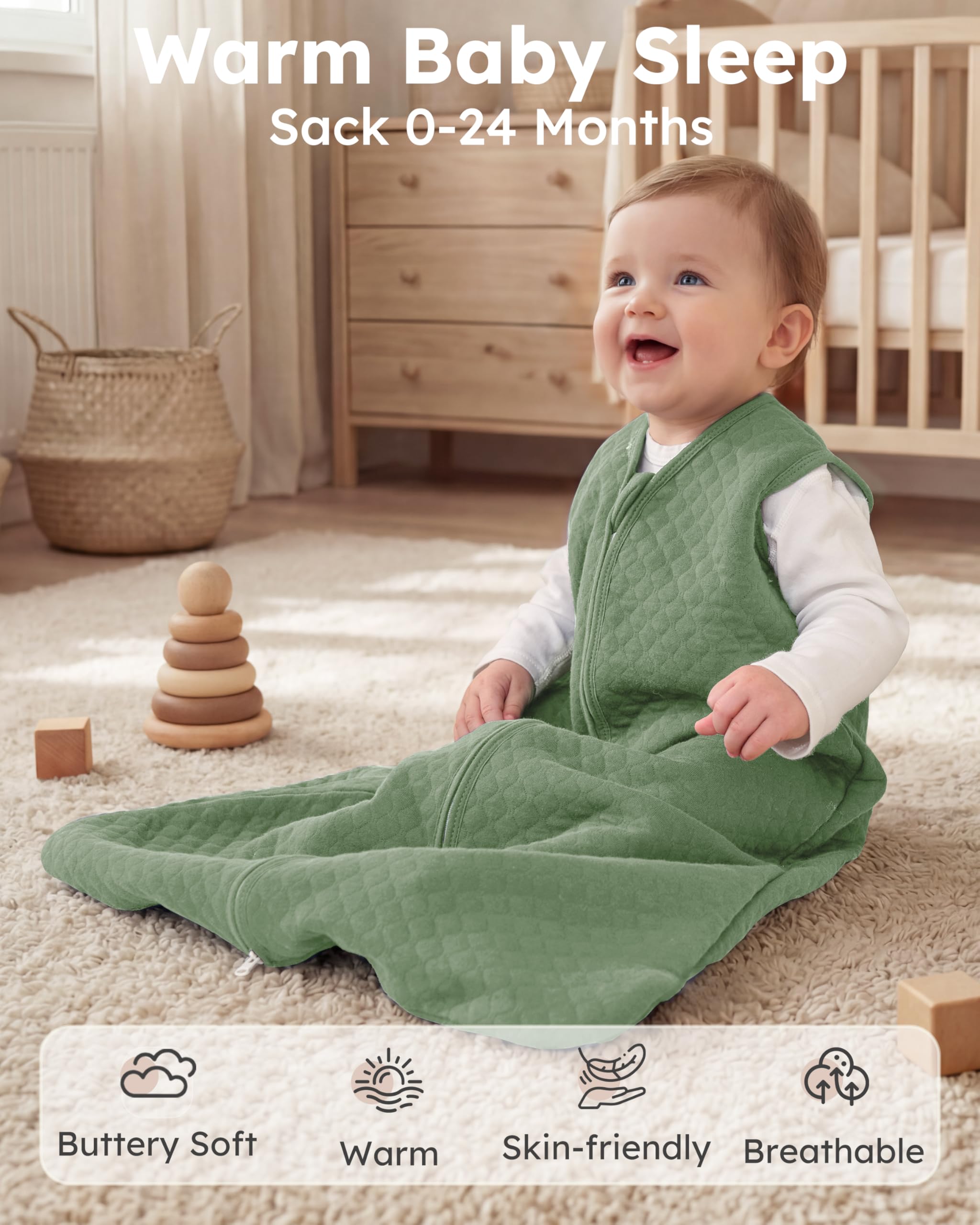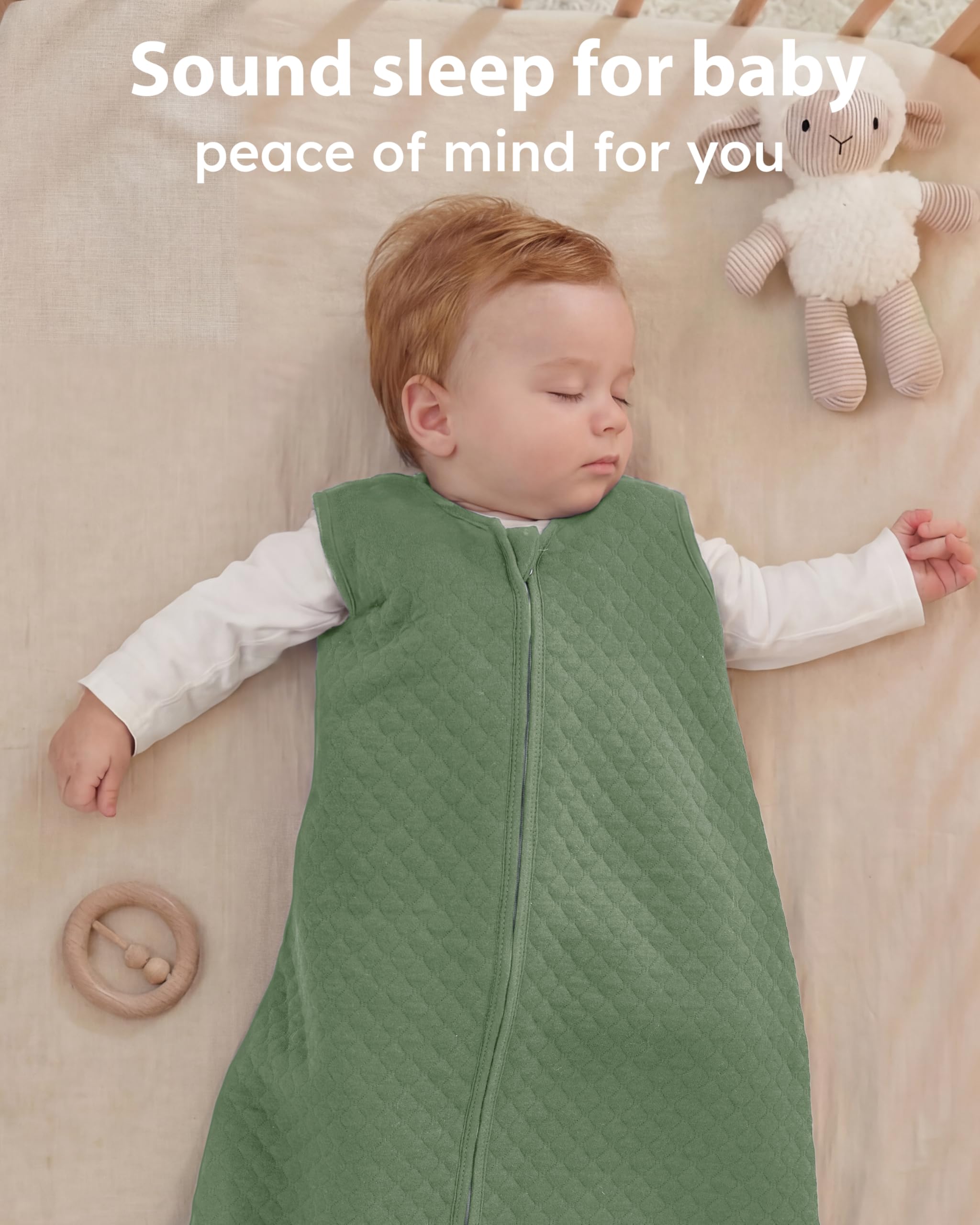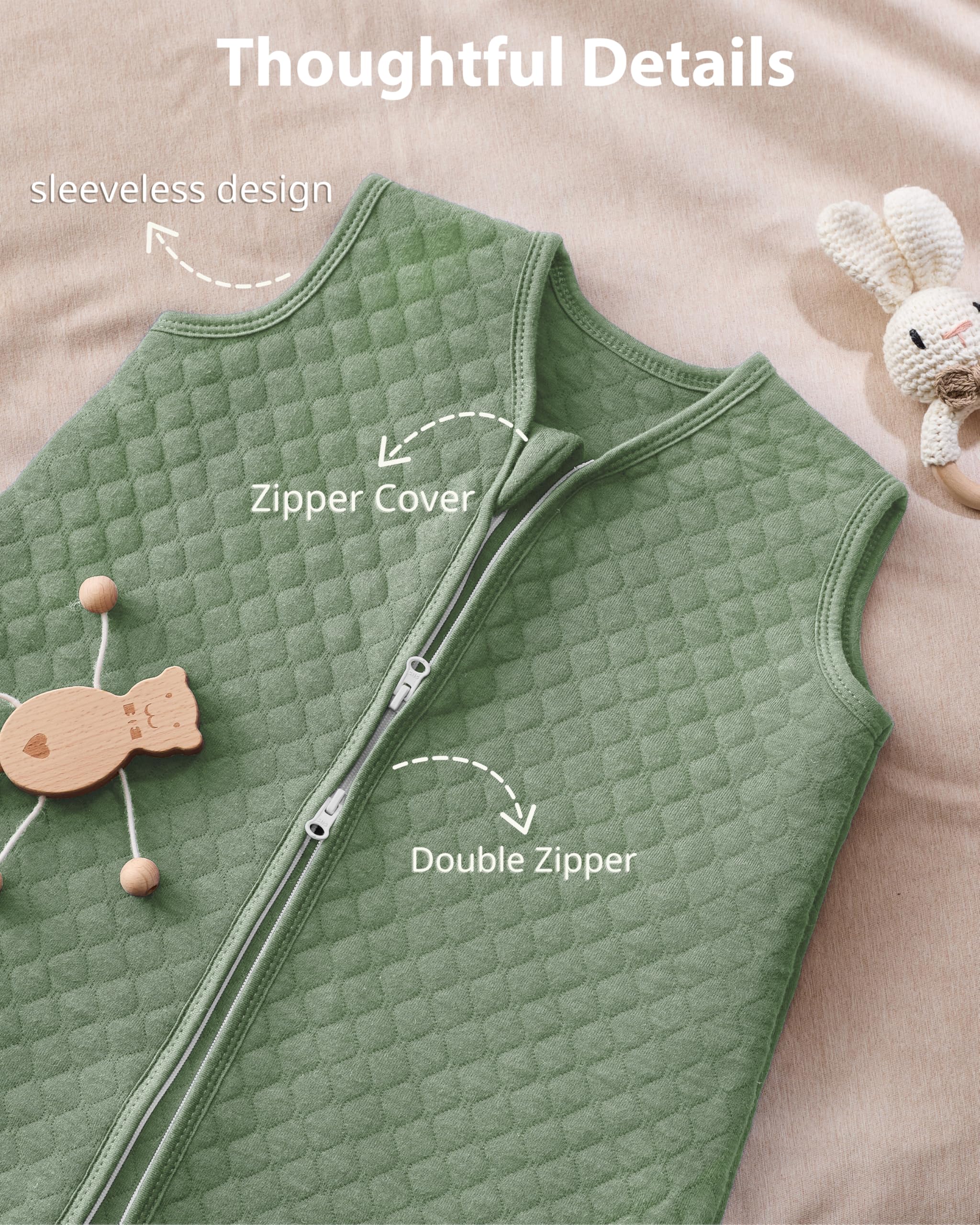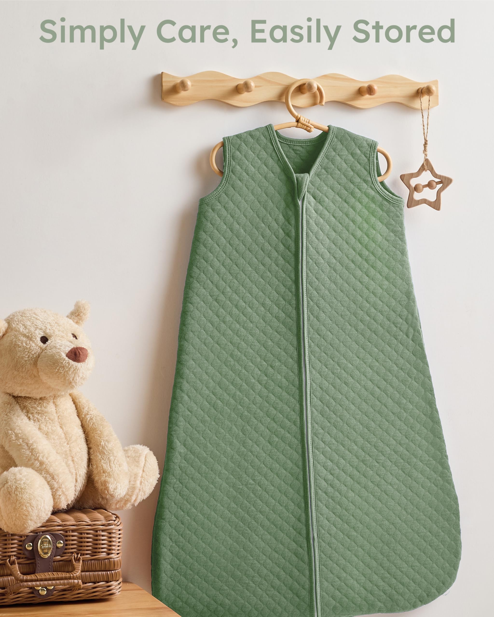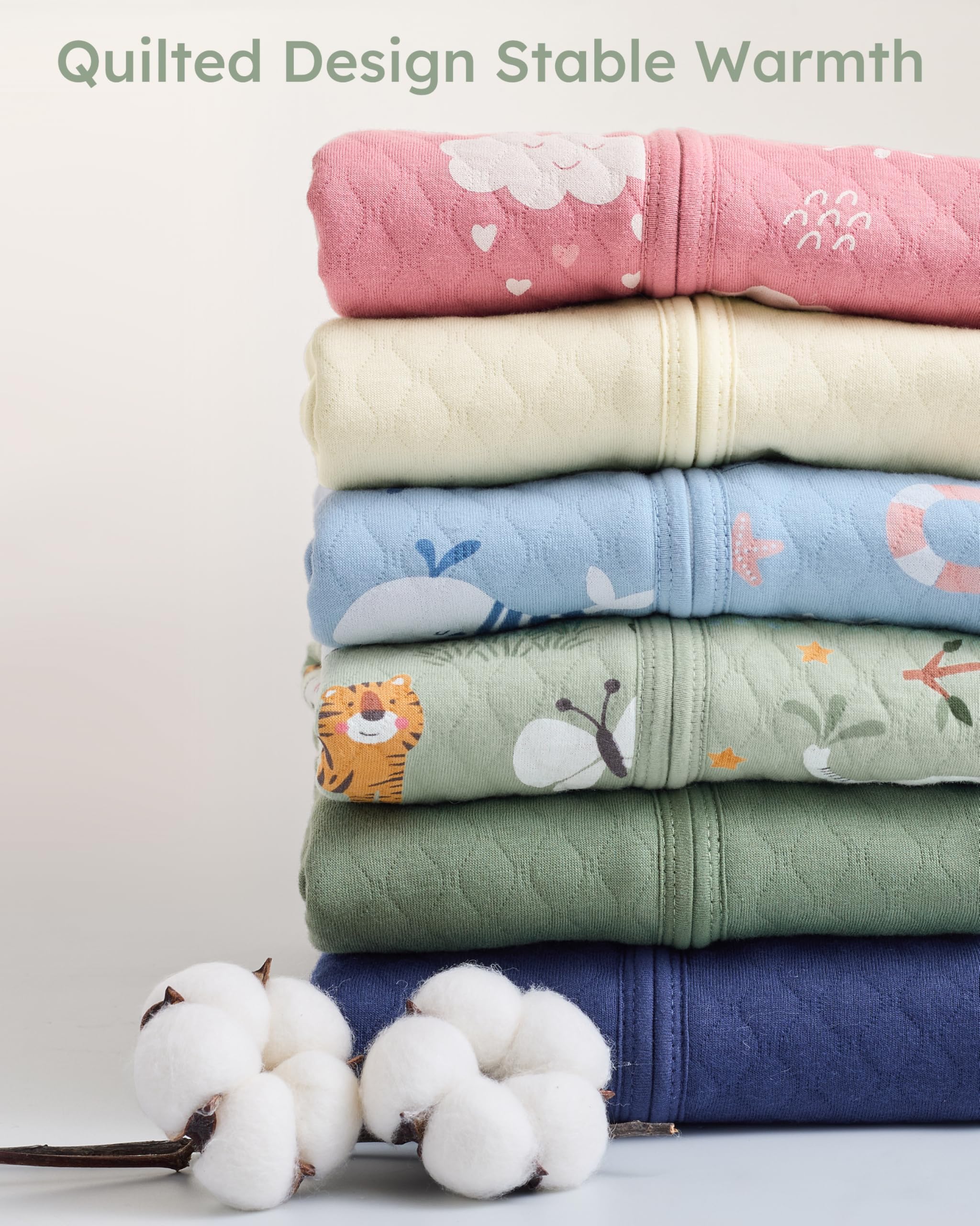 Quilted to Last: The long-lasting quilted design for the baby sleep sack keeps the fill evenly in place after repeated washes. No shifting, no bunching, which means worry-free for you and fewer replacements as your baby grows. It provides just the right warmth and is completely washable without worry.