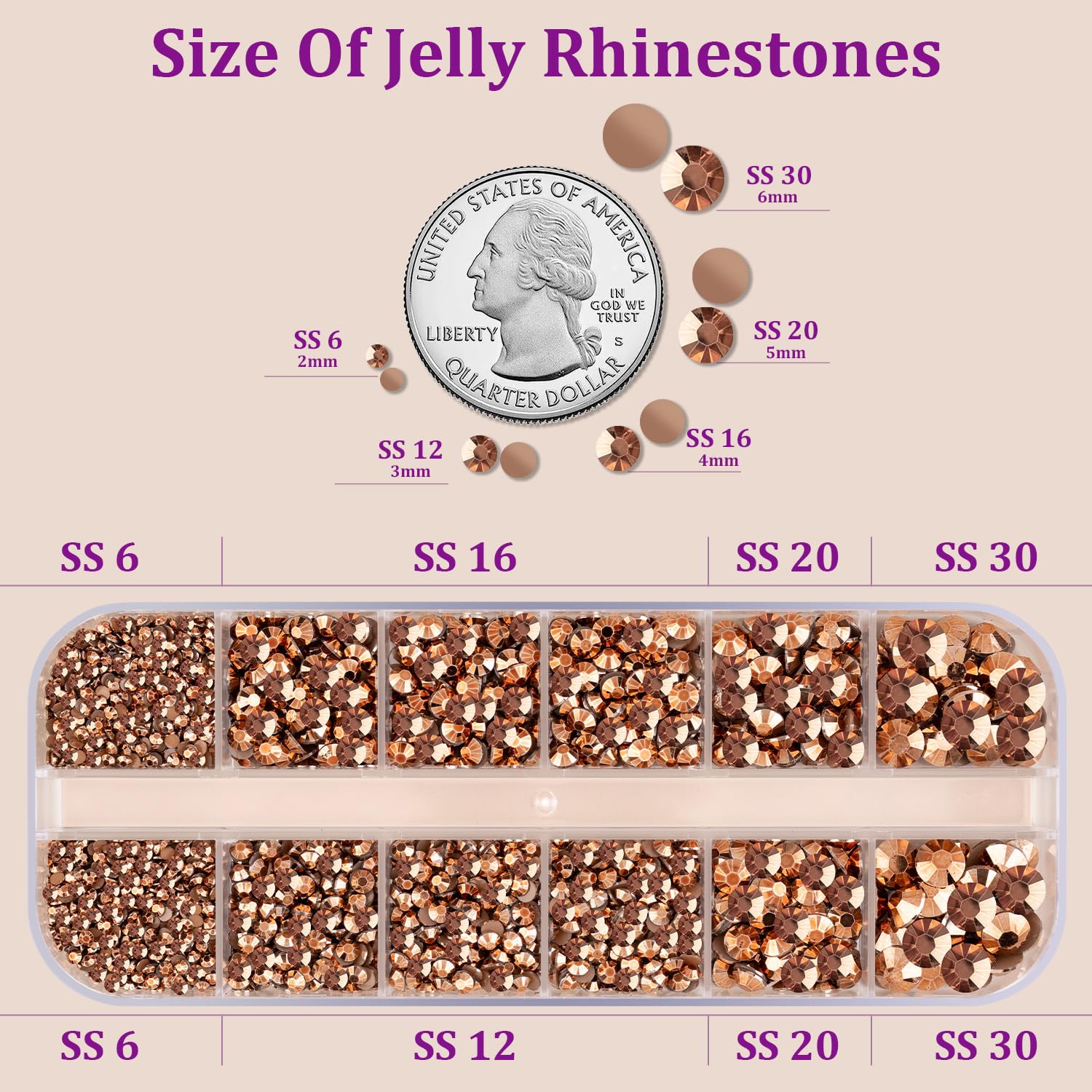 🟤WHAT YOU WILL GET -- The package includes 1 box of flatback rhinestones with 12 grids in diffrent sizes:2mm x 2 grids, 3mm x 3 grids, 4mm x 3 grids, 5mm x 2 grids, 6mm x 2 grids. 1 tweezers for large size gems, 1 pickup pen for small size gems. 3 B7000 adhesive jewels glue for jewelry making.This rhinestone kit makes it easy for you to make any craft you like, and will bedazzle your artworks! 🟤B7000 CLEAR GLUE FOR GEMS -- Our B7000 glue has strong adhesion and dries clear, non-toxic and harmless to the skin.The glue has a precision needle for easy application, initial cure time is 3-5 minutes and full cure time is 24 hours. The glue will have a slight overflow when first used, before use you can leave the glue head up for a few minutes to avoid overflow. After use, the needle needs to be wiped with an alcohol pad. 🟤TIPS FOR USE -- Our flatback rhinestones are non-hotfix, need to use with glue.To apply the resin rhinestones, first, clean the surface of your crafts or your nail you wish to embellish. Then, apply the rhinestones with the appropriate glue and wait for them to dry. Once the glue is completely dry, it will stick firmly to your crafts,make your artwork more sparkling!Our store also offer a variety of colors, these colors will give your crafts more possiblities, more shiny color scheme. 🟤WIDE APPLICATION -- These sparkling iridescent jelly crystals are perfect for creating dazzling looks. Use them for bedazzling DIY crafts like shoes, tumblers, mugs, bottles, phone cases, popsockets, scrapbooks, photo frames, diamond paintings, greeting cards, bags, glasses, guitars, keychains, hats, masks, hair clips, bracelets, wristbands, clothing, wedding dresses, and more. Apply it to what you want to bling!