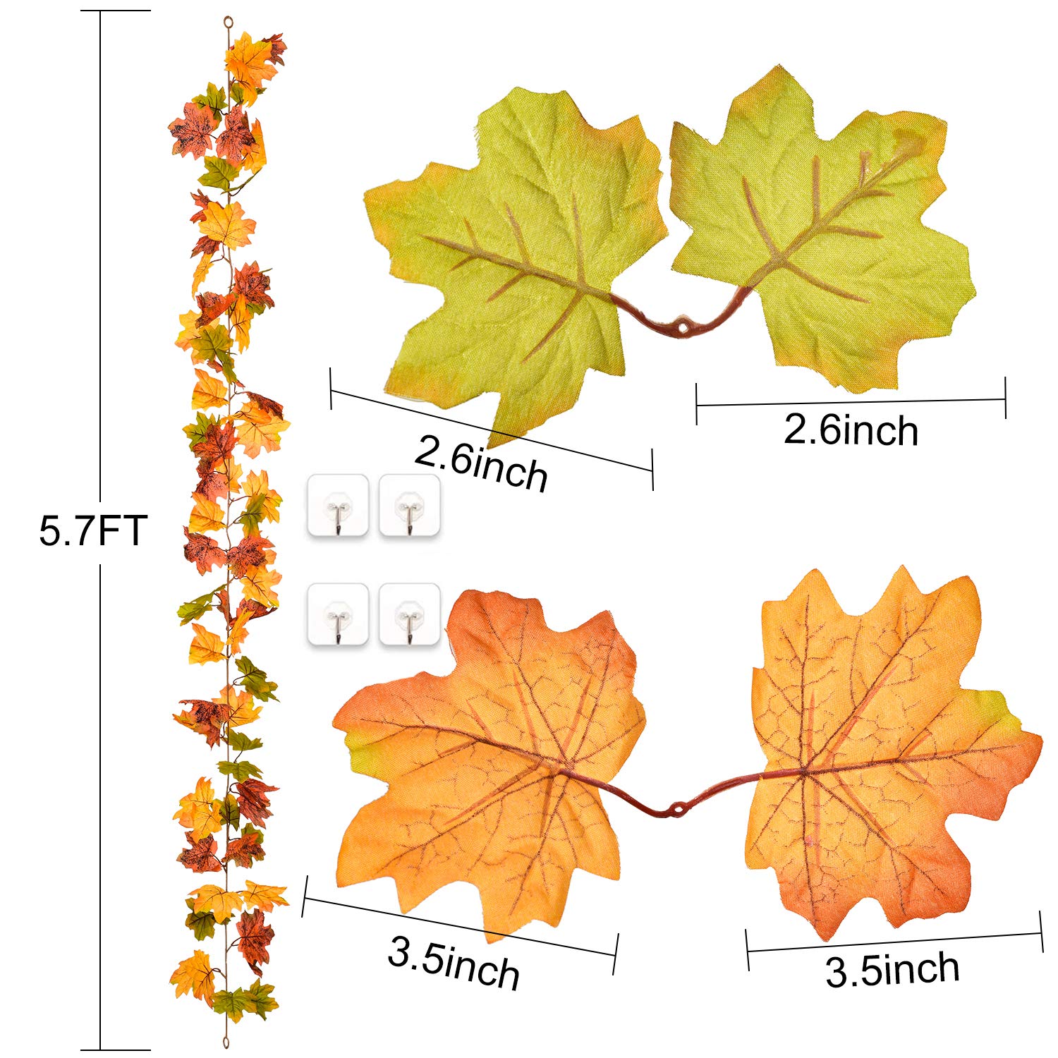 【Superior Material】 The maple leaves are made of quality plastic and silk cloth leaves, durable and vivid; The garland stems are made of flexible wire.
