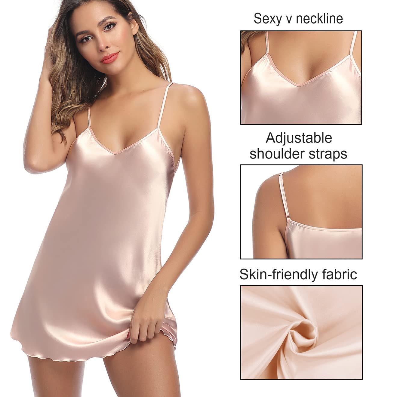 Versatile v neck nightwear satin negligee lingerie could wear as a full slip for women under dress short, perfect layer this satin camisole nightgown with robes, cardigans, and jackets